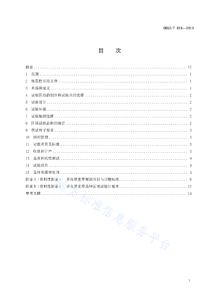 DB52/T 818-2013 多花黑麦草品种区域试验技术规程
