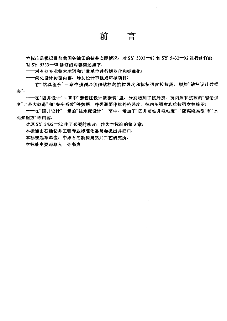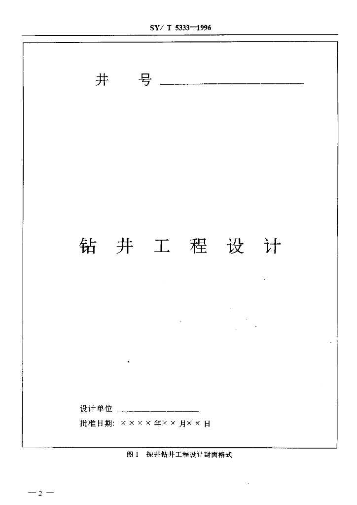 SY/T 5333-1996 钻井工程设计格式