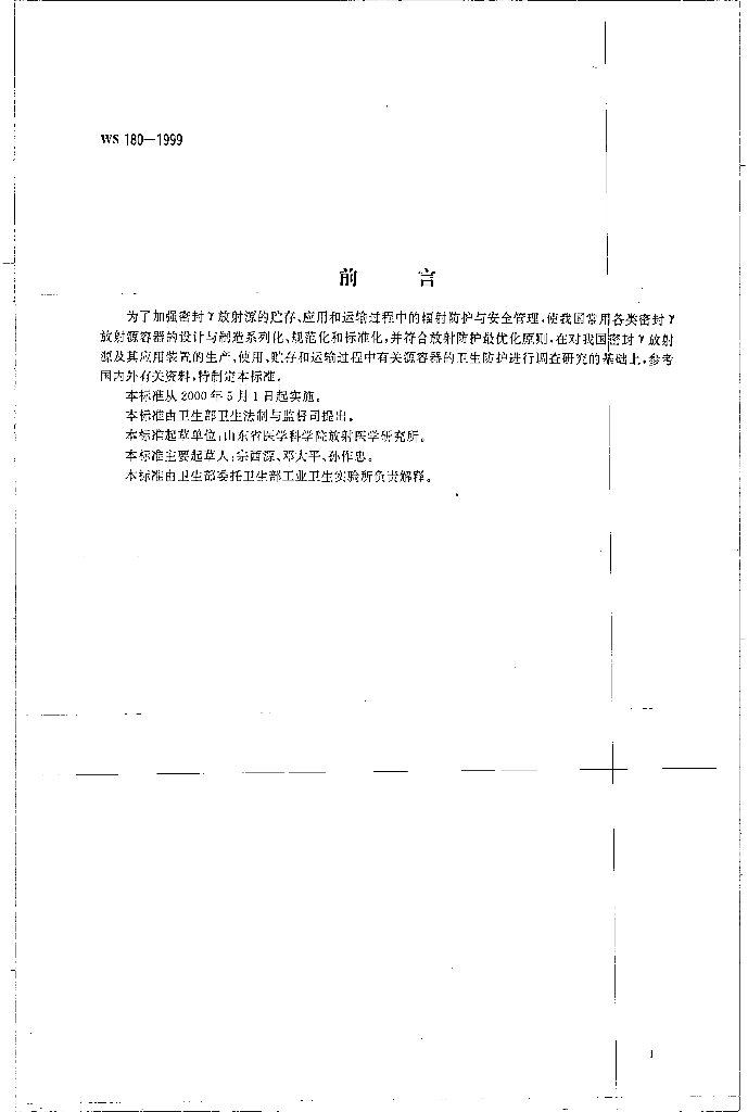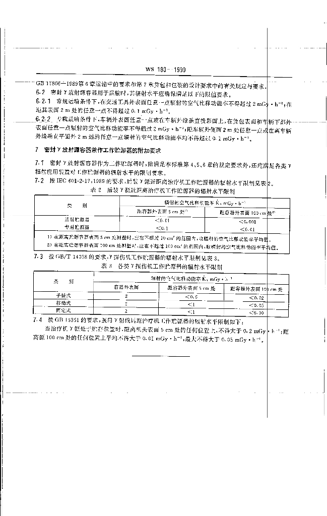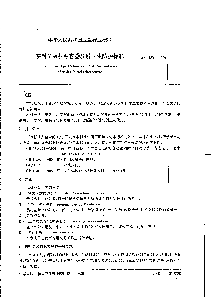 WS/T 180-1999 密封γ放射源容器放射卫生防护标准