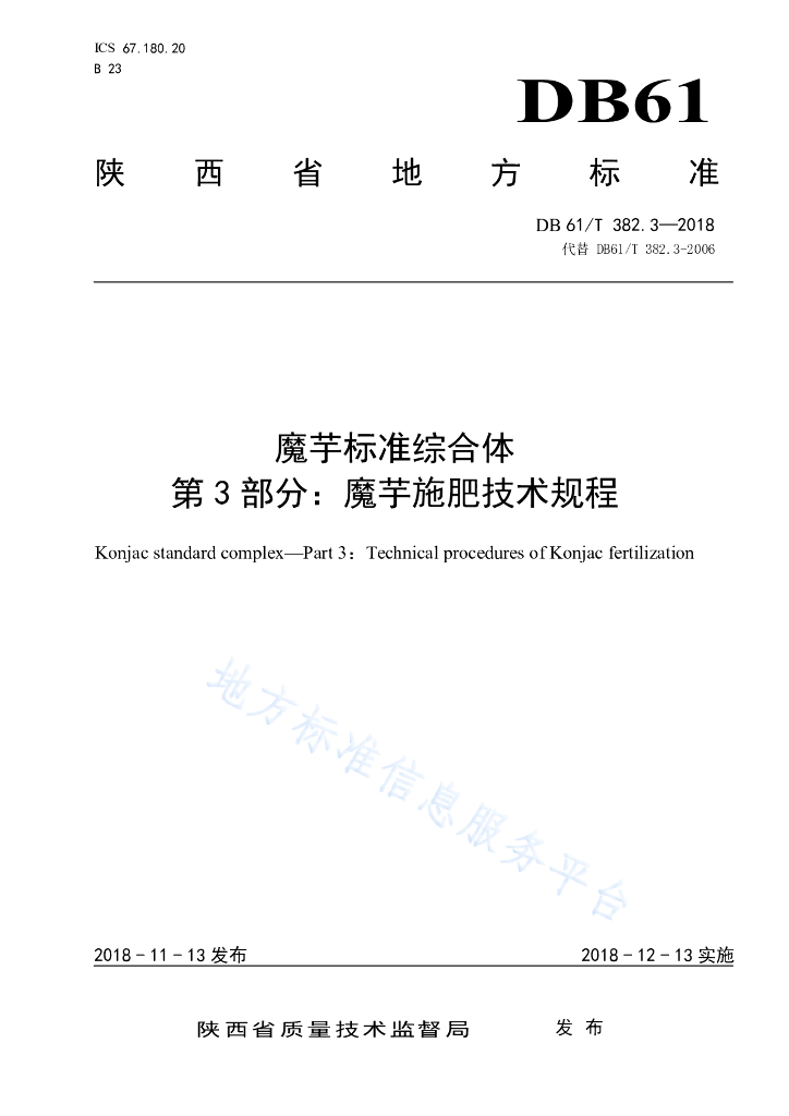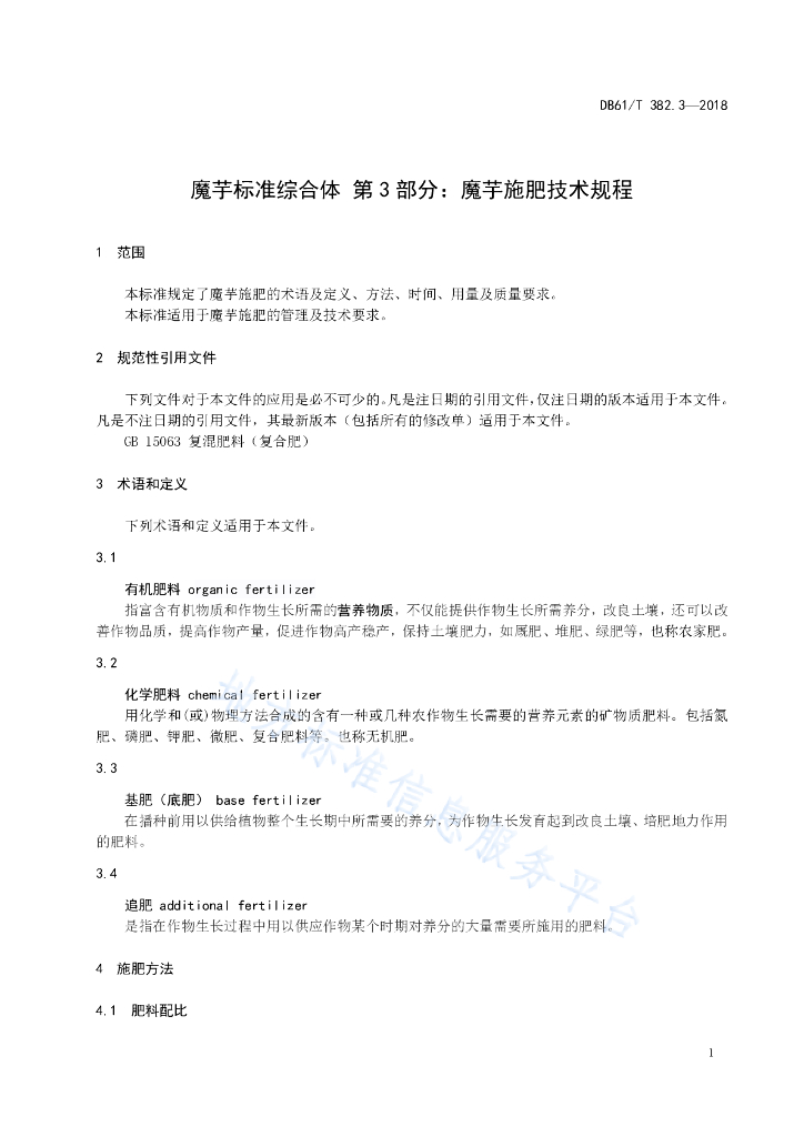 DB61/T 382.3-2018 魔芋标准综合体 第 3 部分 : 魔芋施肥技术规程