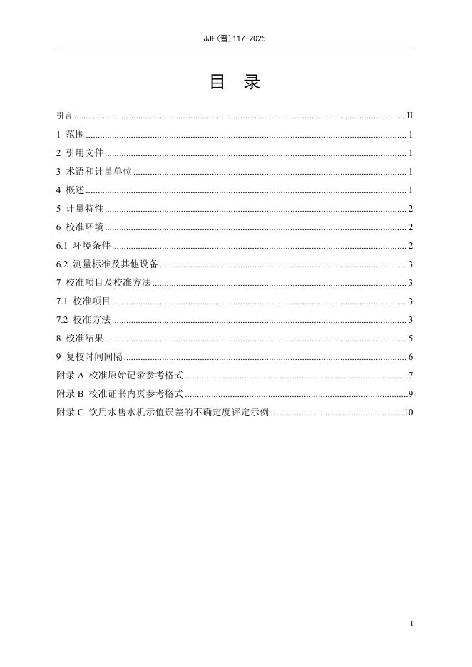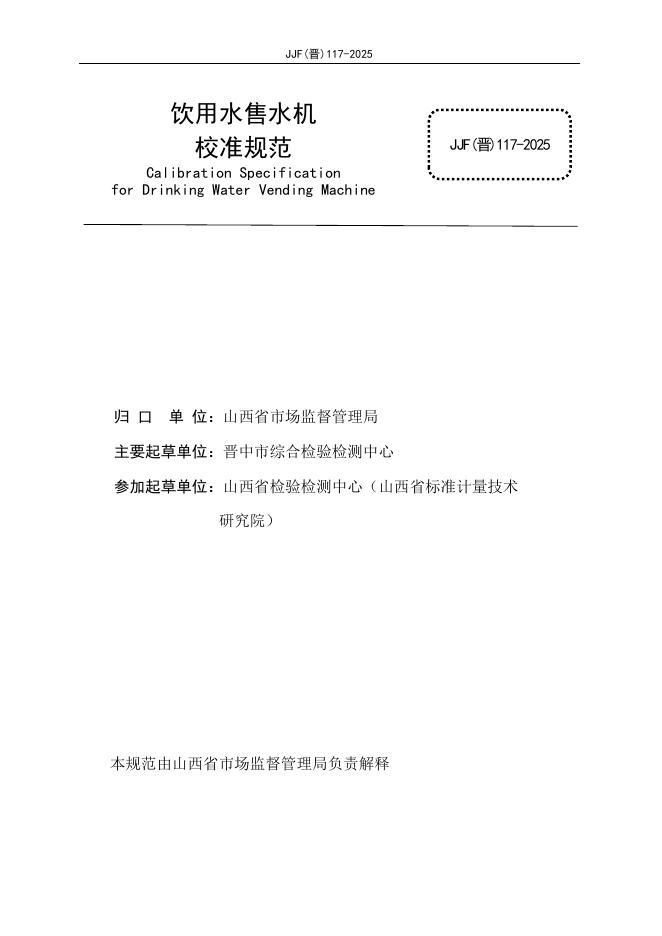 JJF(晋)117-2025 饮用水售水机校准规范