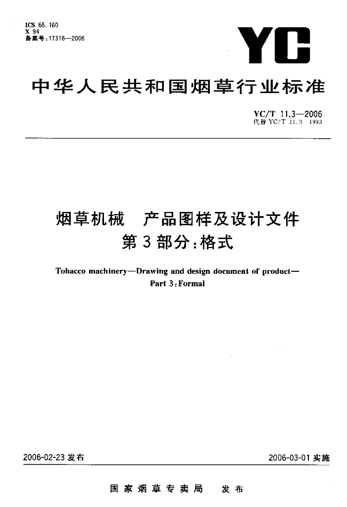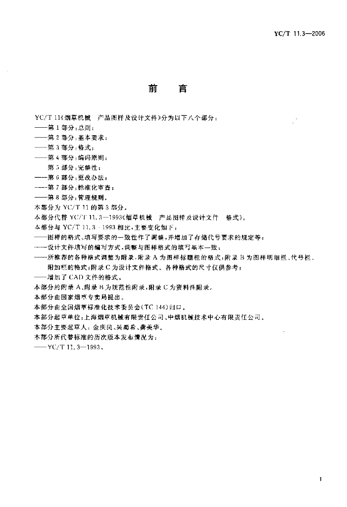 YC/T 11.3-2006 烟草机械 产品图样及设计文件 第3部分 格式