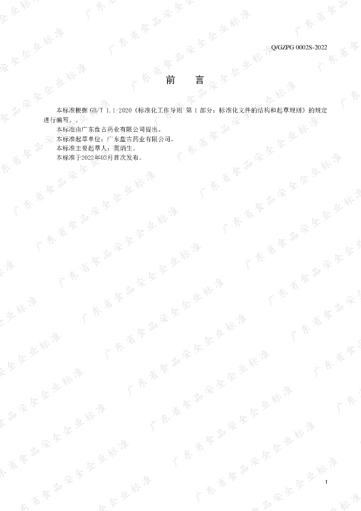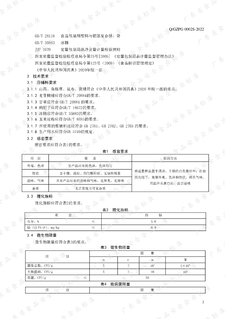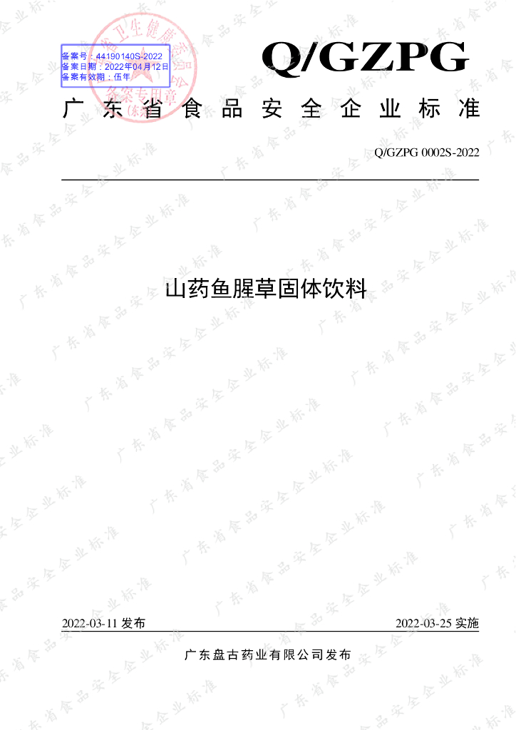 Q/GZPG 0002S-2022 山药鱼腥草固体饮料