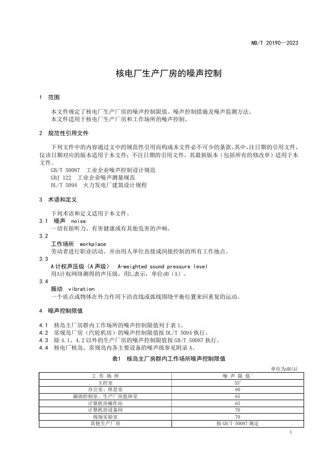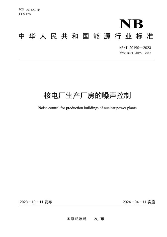 NB/T 20190-2023 核电厂生产厂房的噪声控制