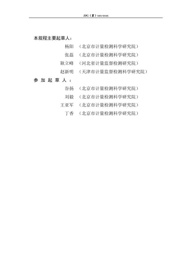 杨阳(北京市计量检测科学研究院)、张磊(北京市计量检测科学研究院)、耿立峰(河北省计量监督检测研究院)、赵新明(天津市计量监督检测科学研究院)、谷扬(北京市计量检测科学研究院)、刘毅(北京市计量检测科学研究院)、王亚军(北京市计量检测科学研究院)、丁香(北京市计量检测科学研究院)