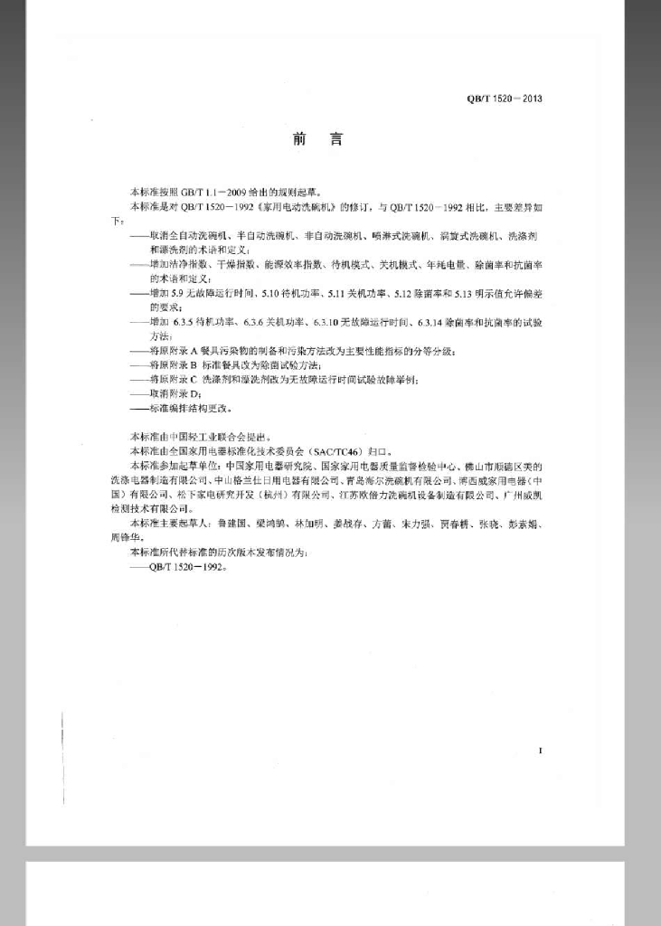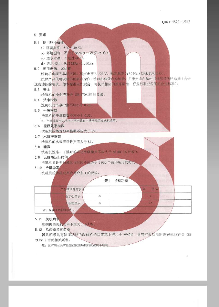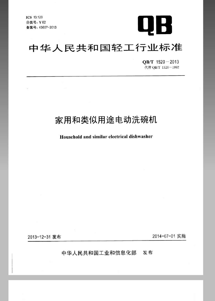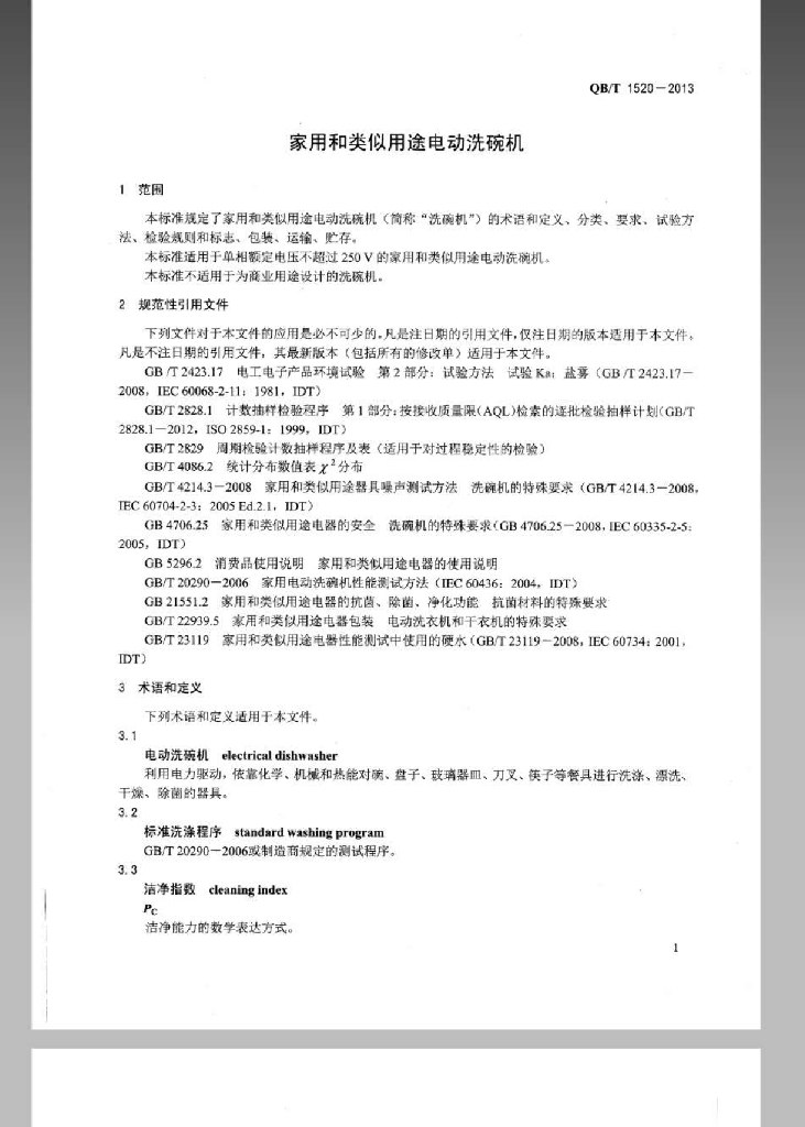 QB/T 1520-2013 家用和类似用途电动洗碗机