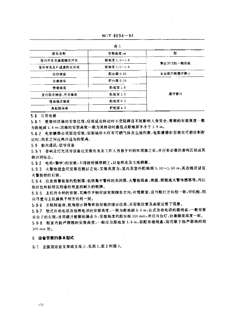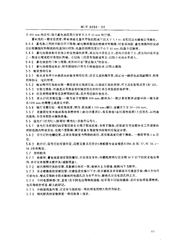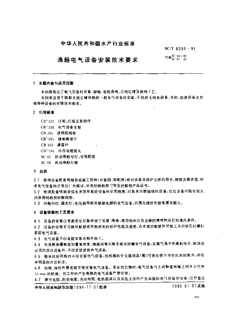 SC/T 8094-1994 渔船电气设备安装技术要求