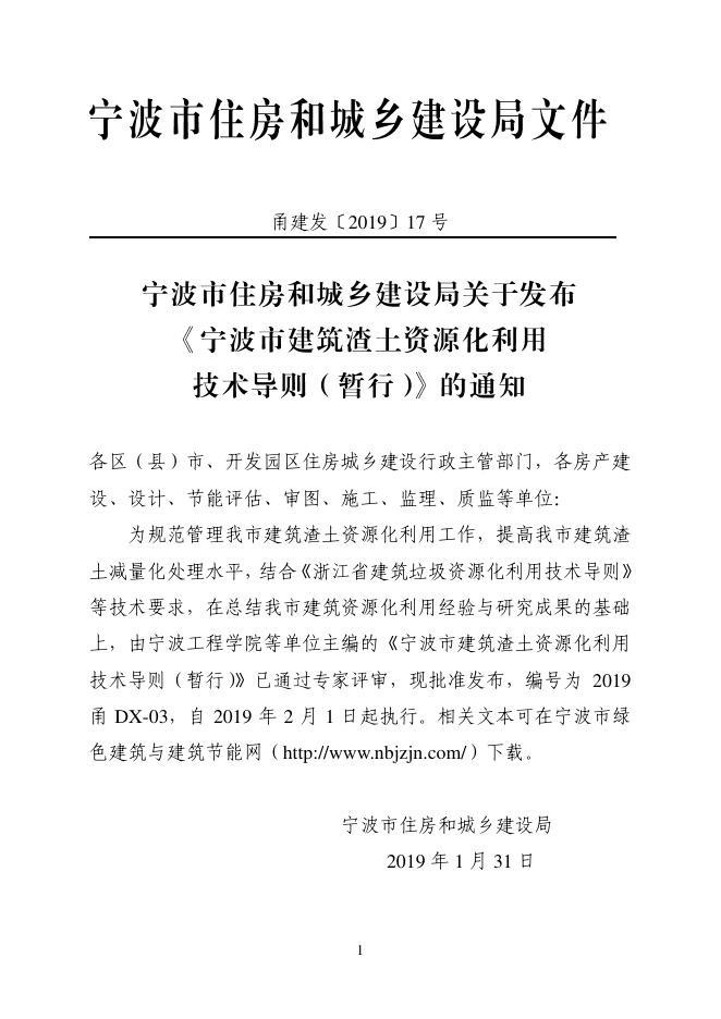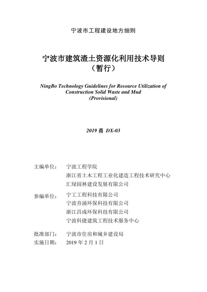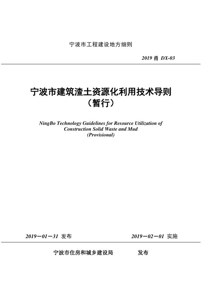 2019甬DX-03 宁波市建筑渣土资源化利用技术导则(暂行)