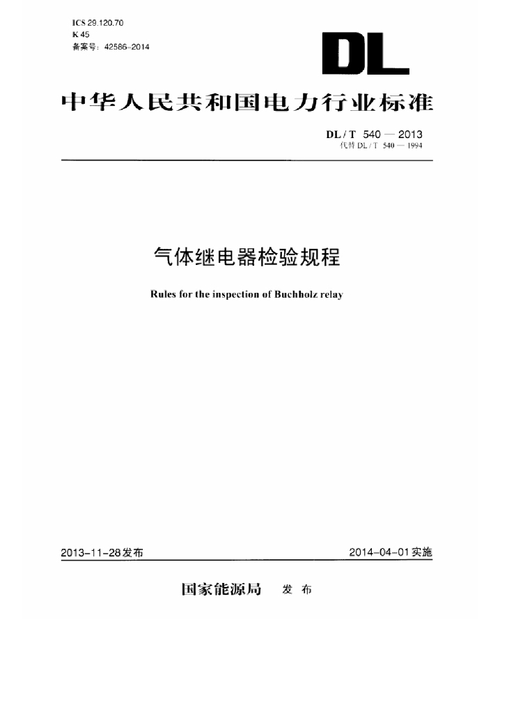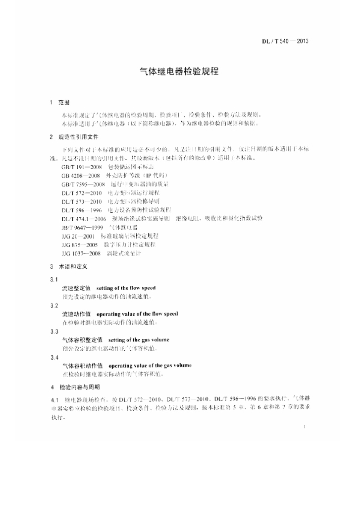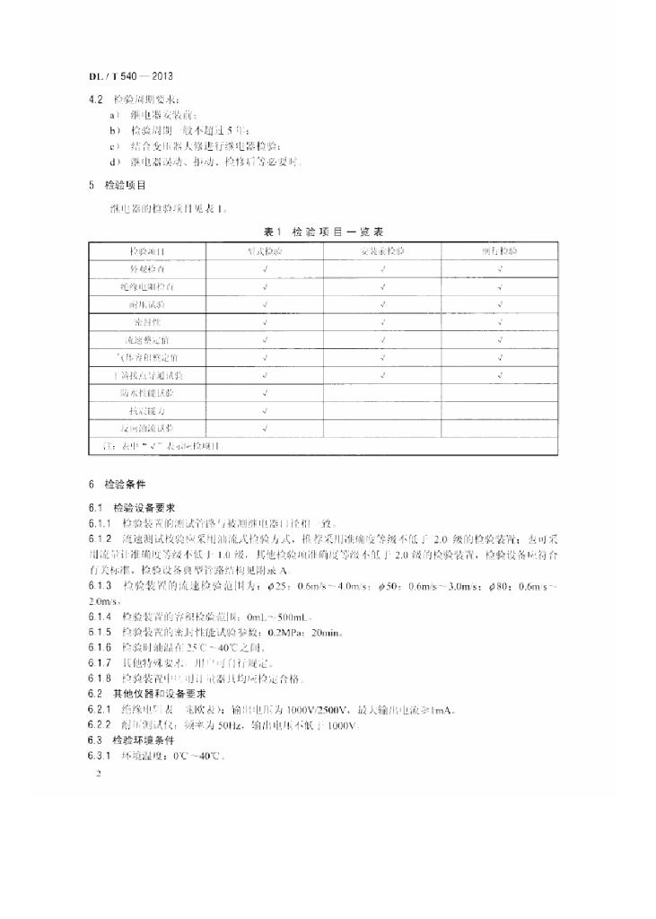 DL/T 540-2013 气体继电器检验规程