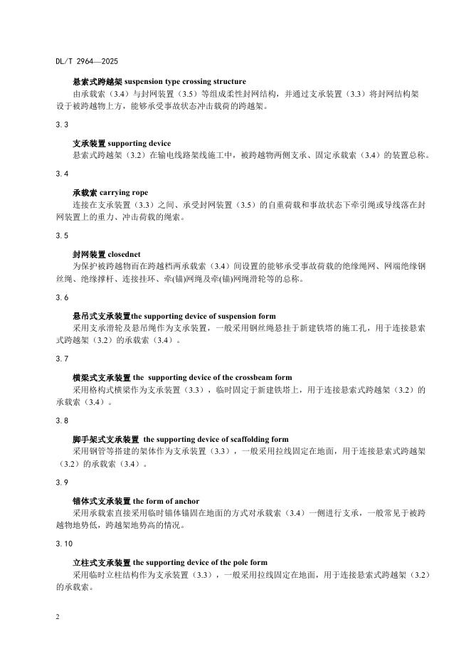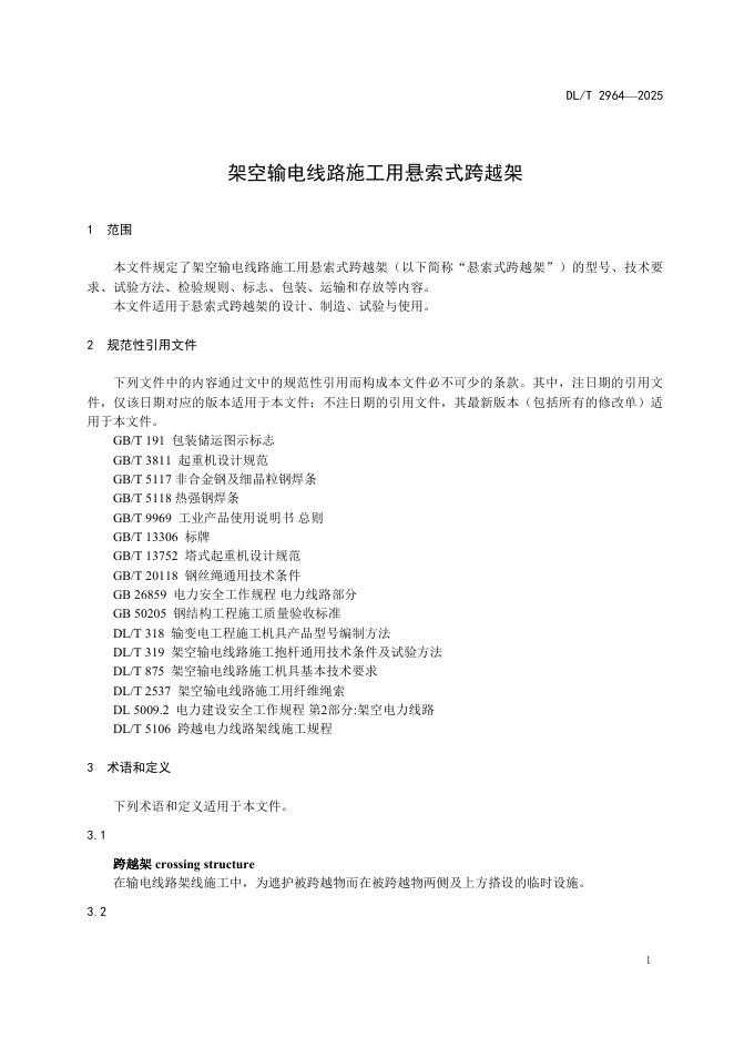 DL/T 2964-2025 架空输电线路施工用悬索式跨越架