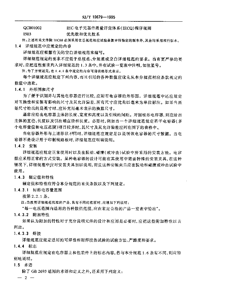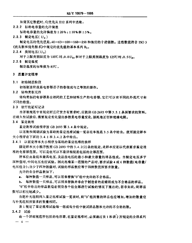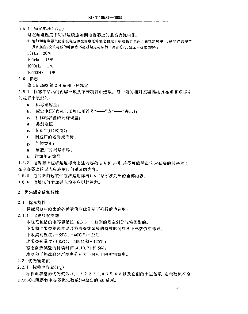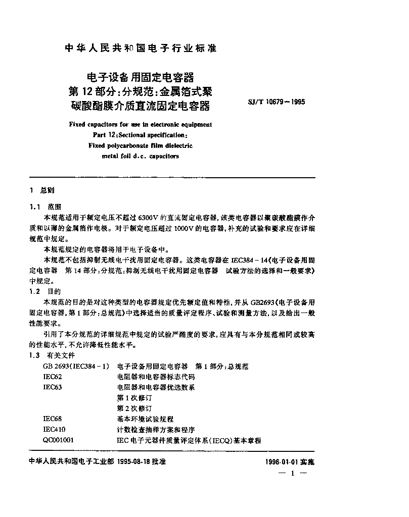 SJ/T 10679-1995 电子设备用固定电容器 第12部分 分规范 金属箔式聚碳酸酯膜介质直流固定电容器