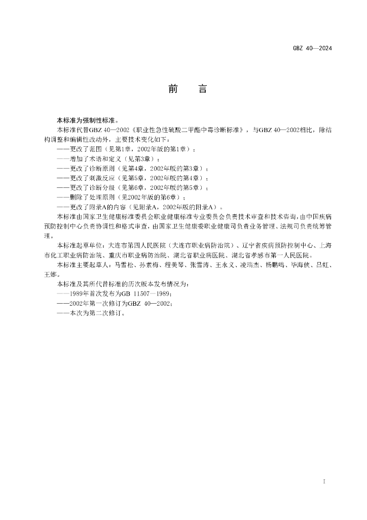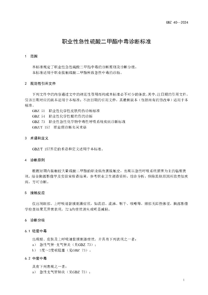 GBZ 40-2024 职业性急性硫酸二甲酯中毒诊断标准