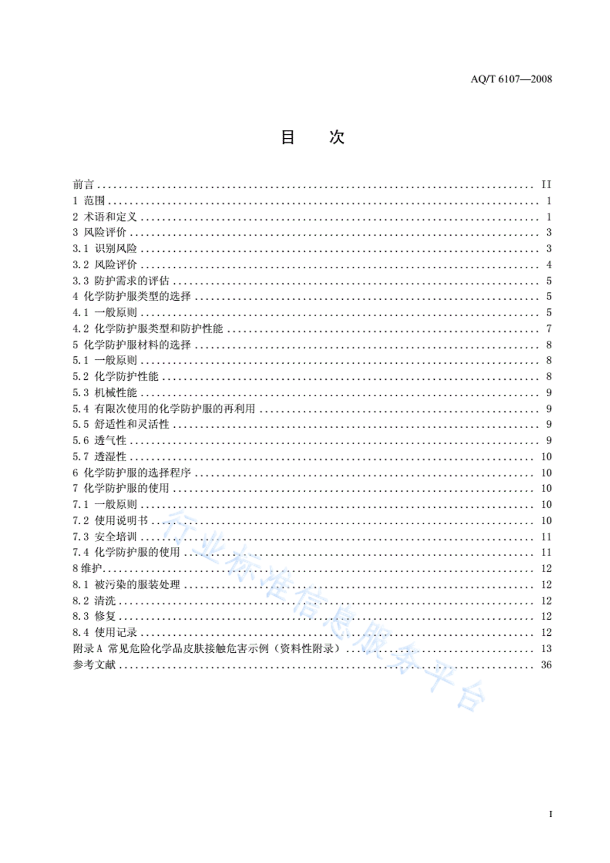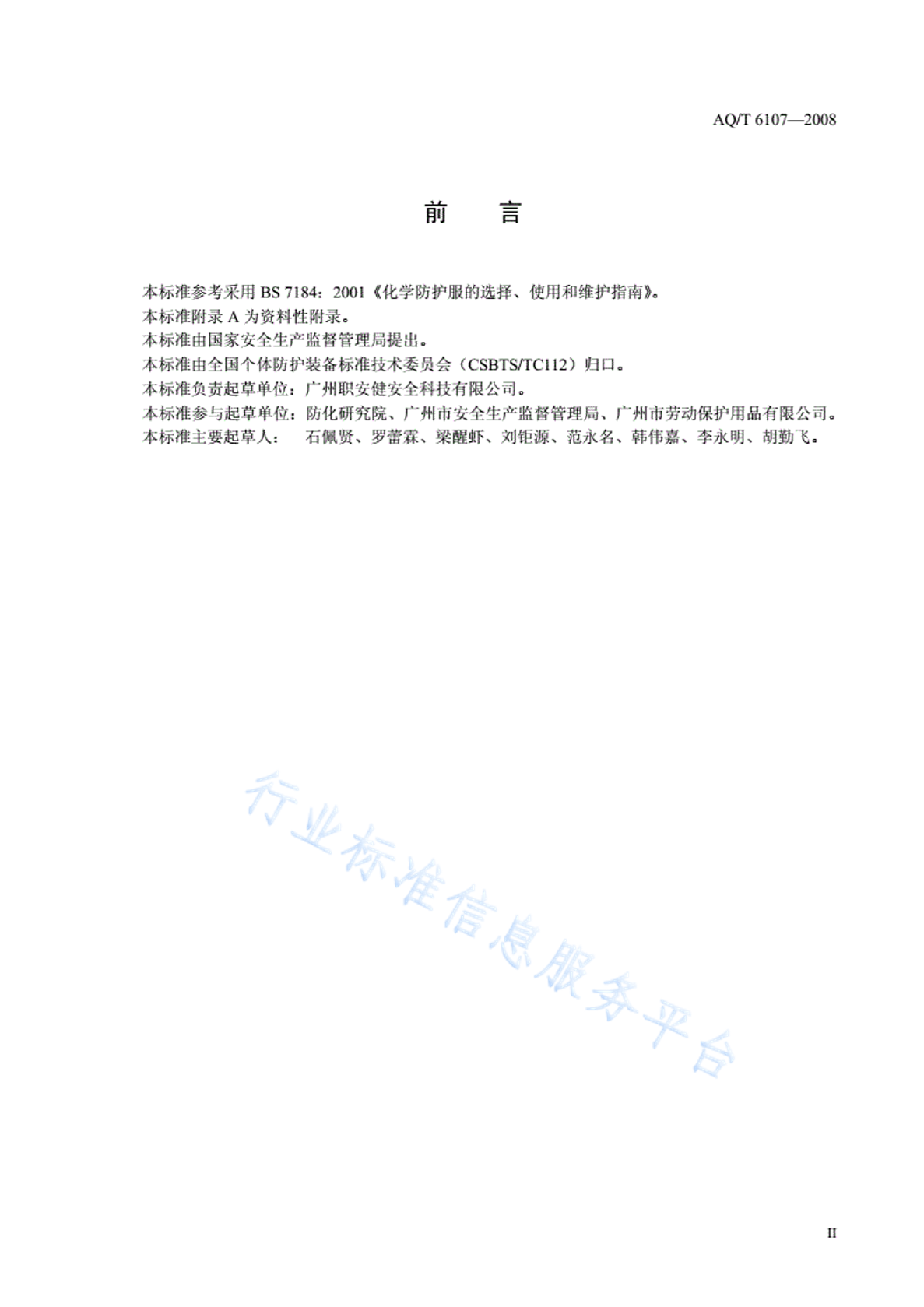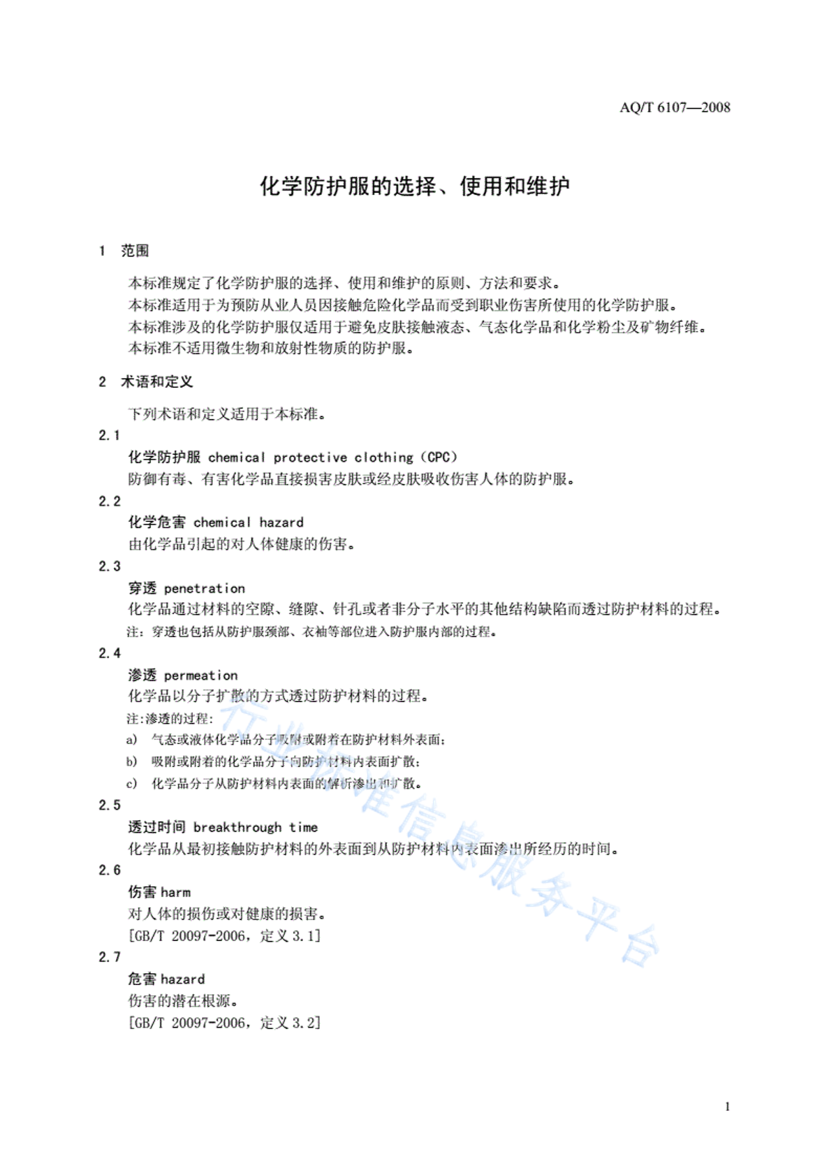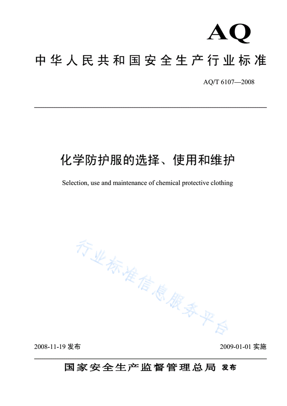 AQ/T 6107-2008 化学防护服的选择、使用和维护