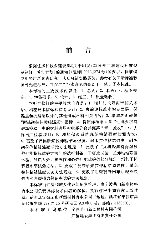 宁波荣山新型材料有限公司、广厦建设集团有限责任公司、中国建筑材料科学研究总院有限公司、上海市建筑科学研究院(集团)有限公司、浙江省建筑科学设计研究院有限公司、河南省建筑科学研究院有限公司、江西省建筑科学研究院、同济大学、浙江大学、宁波工程学院、华南理工大学、郑州大学、宁波市建筑工程安全质量监督总站、昆山长绿环保建材有限公司、中厦建设集团有限公司、中国建筑第七工程局有限公司、重庆坤飞建设(集团)有限公司、杭州泰富龙新型建筑材料有限公司、南阳银通节能建材高新技术开发有限公司、宁波和邦检测研究有限公司、宁波世纪
