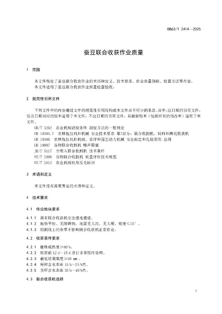 DB63/T 2414-2025 蚕豆联合收获作业质量