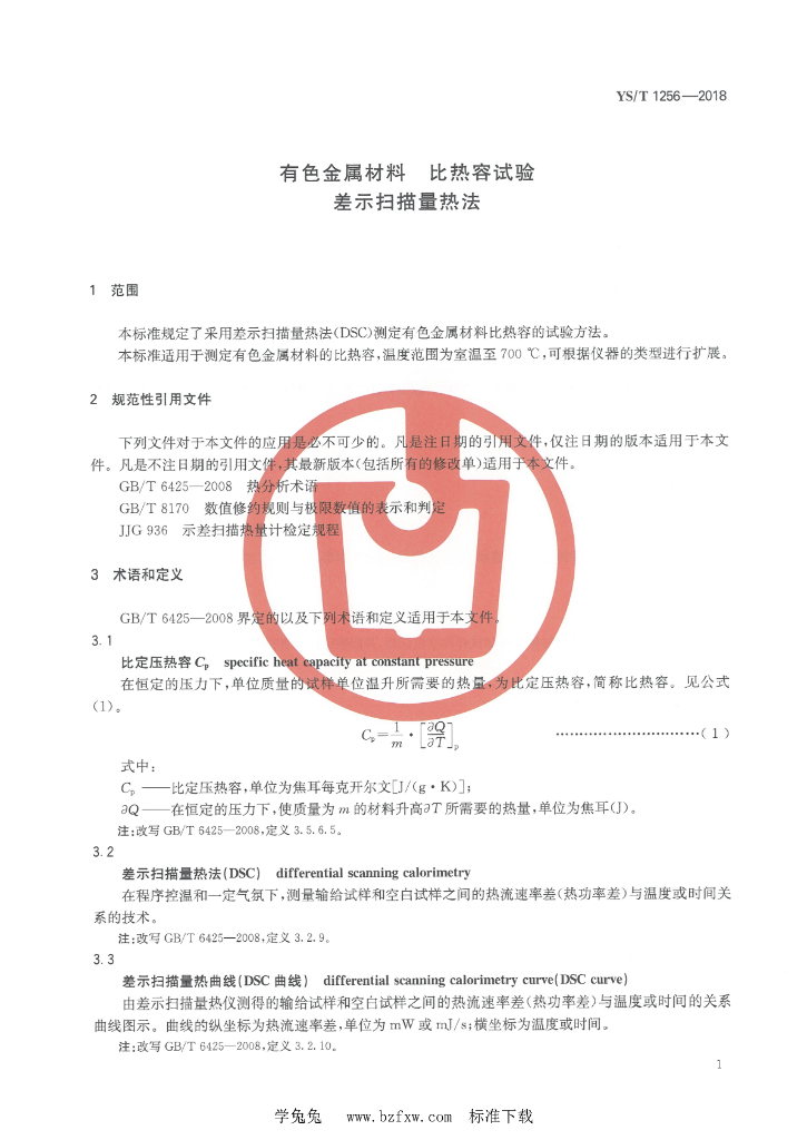YS/T 1256-2018 有色金属材料 比热容试验 差示扫描量热法