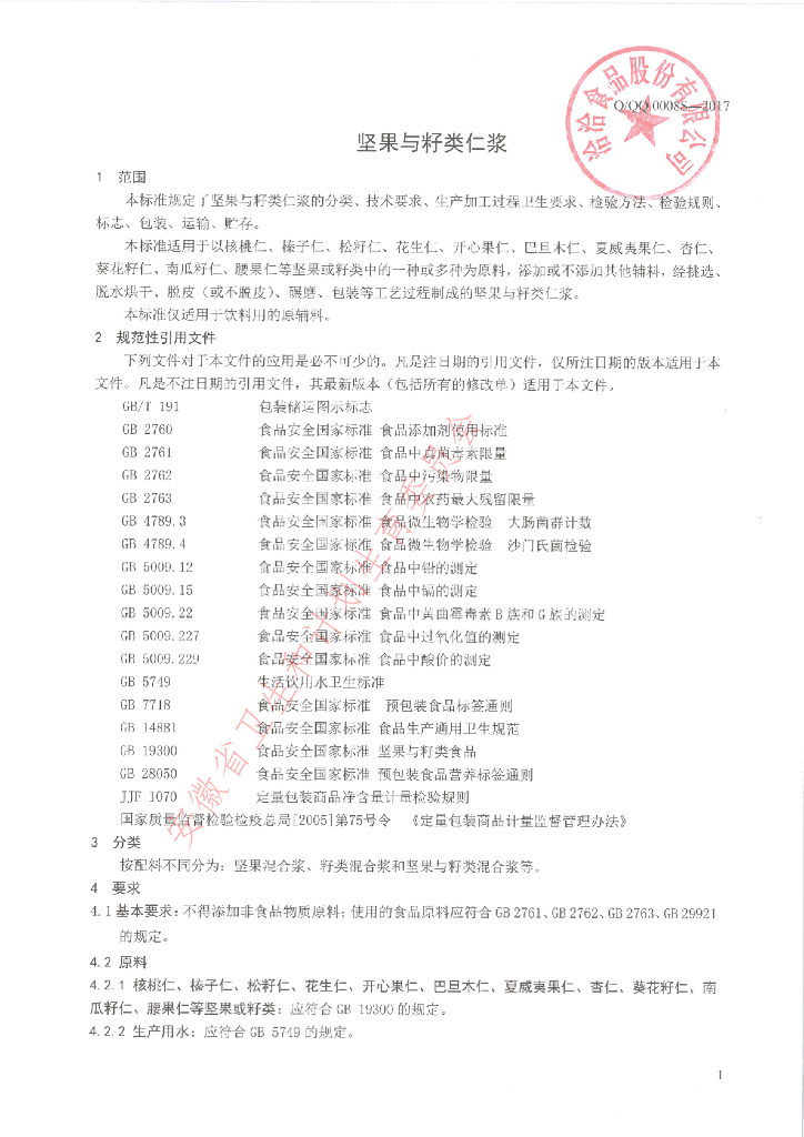 Q/QQ 0008S-2017 坚果与籽类仁浆