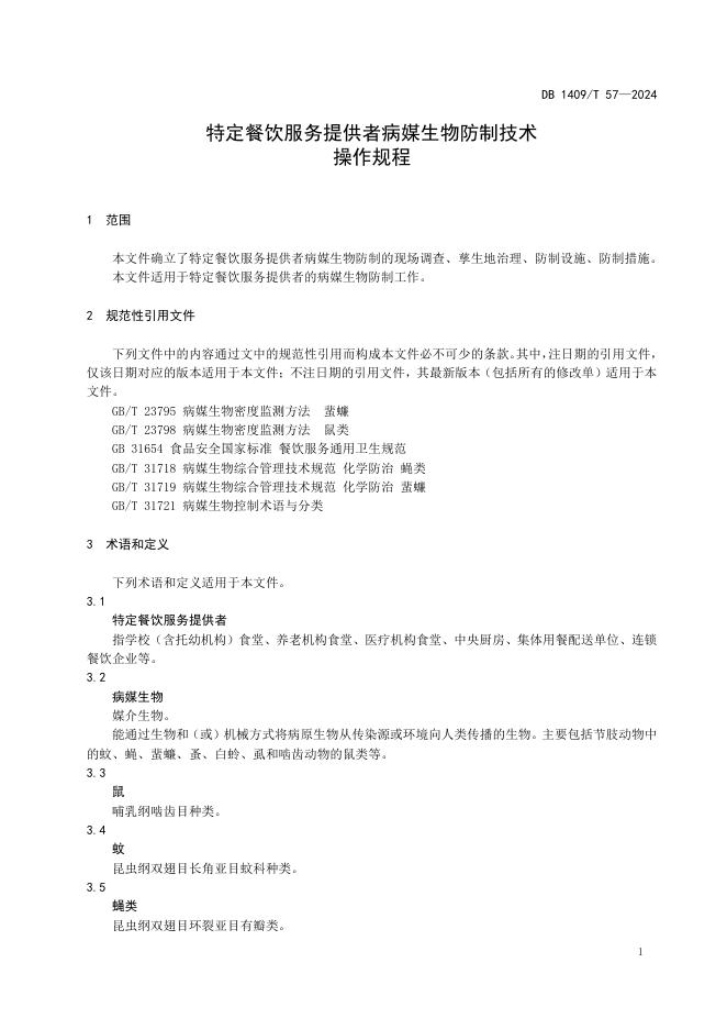 DB1409/T 57-2024 特定餐饮服务提供者病媒生物防制技术操作规程