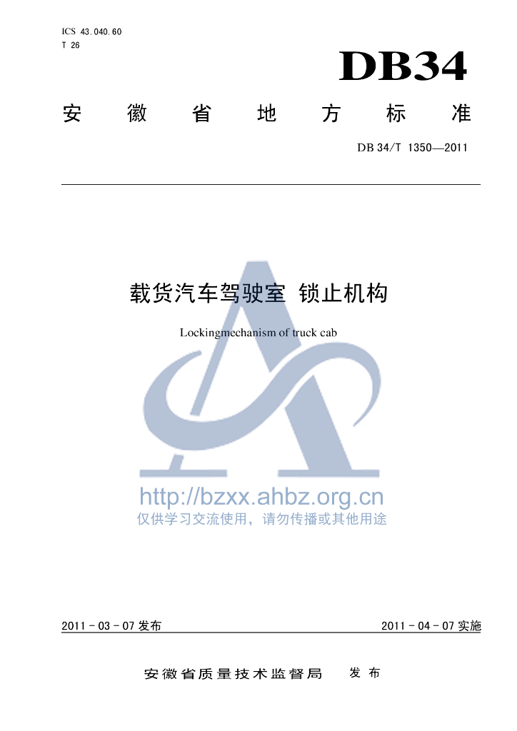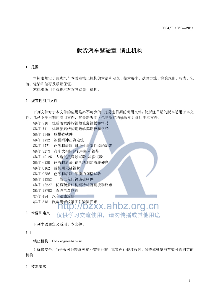 DB34/T 1350-2011 载货汽车驾驶室 锁止机构