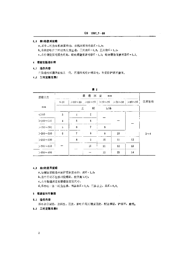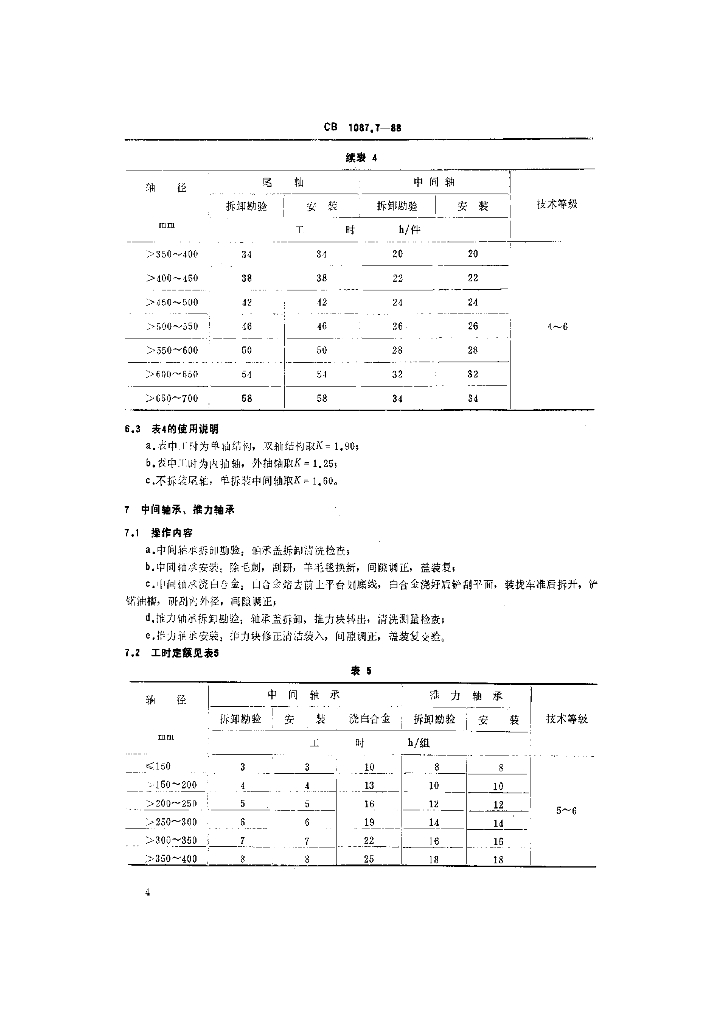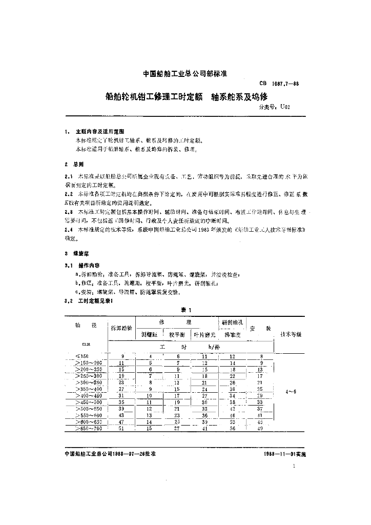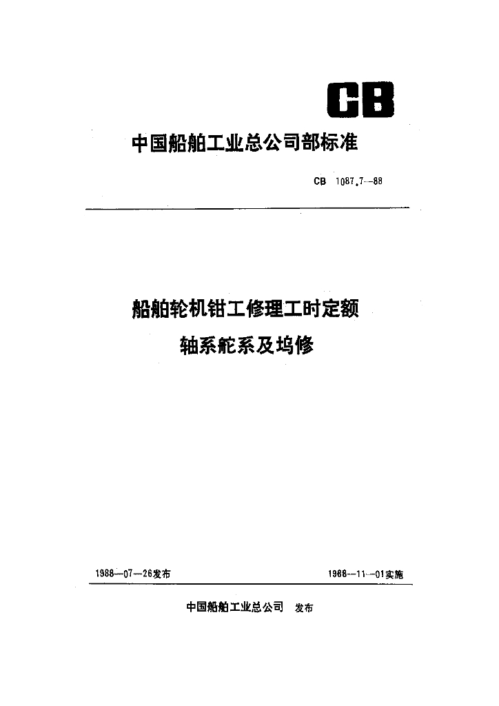 CB 1087.7-1988 船舶轮机钳工修理工时定额 轴系舵系及坞修