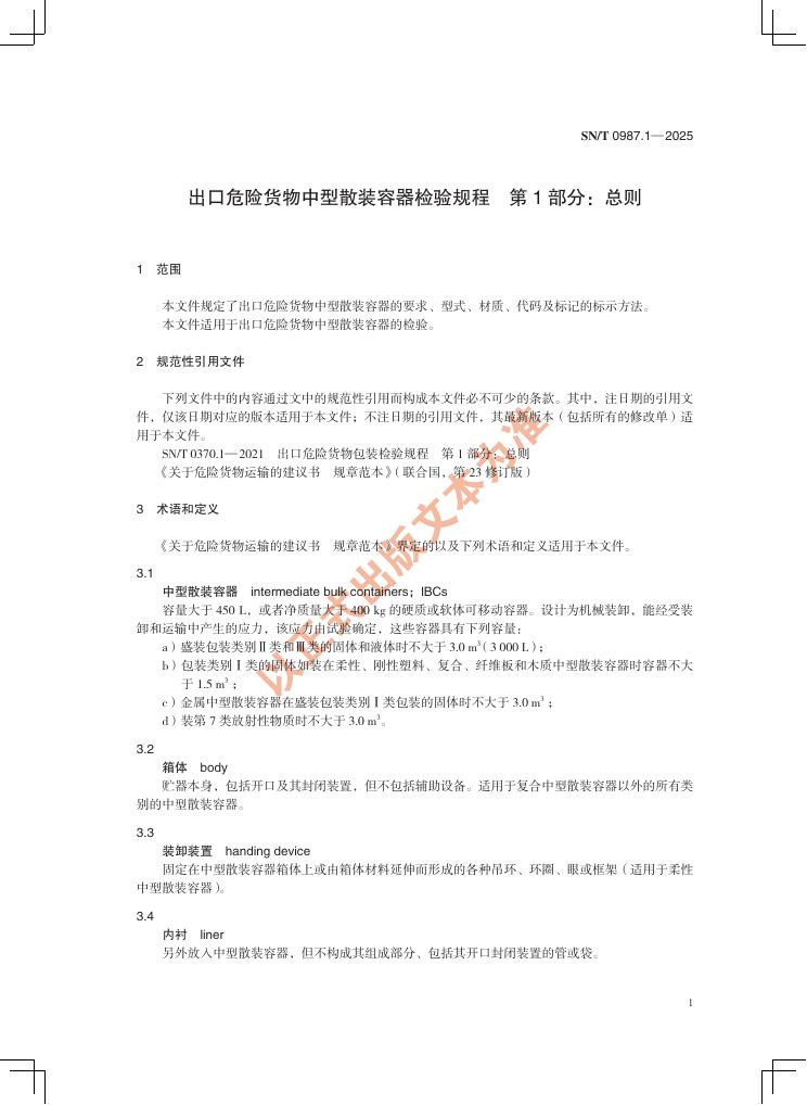 SN/T 0987.1-2025 出口危险货物中型散装容器检验规程 第1部分:总则