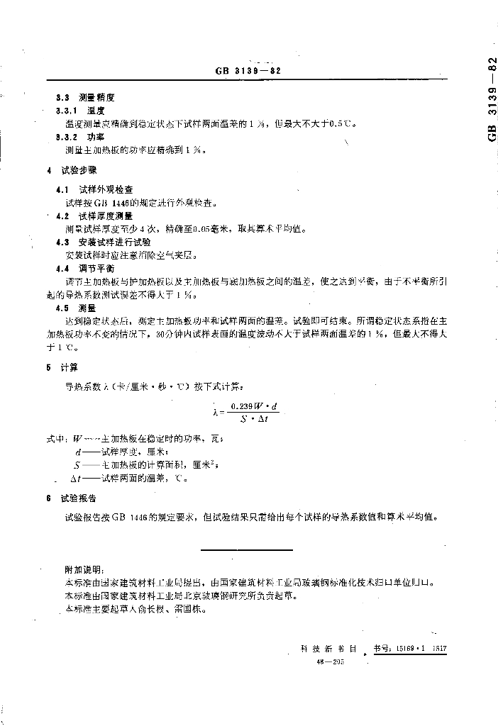 GB/T 3139-1982 玻璃钢导热系数试验方法