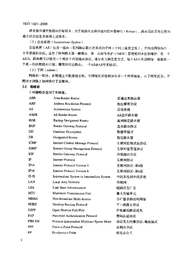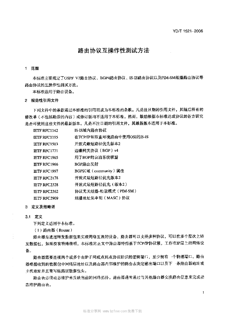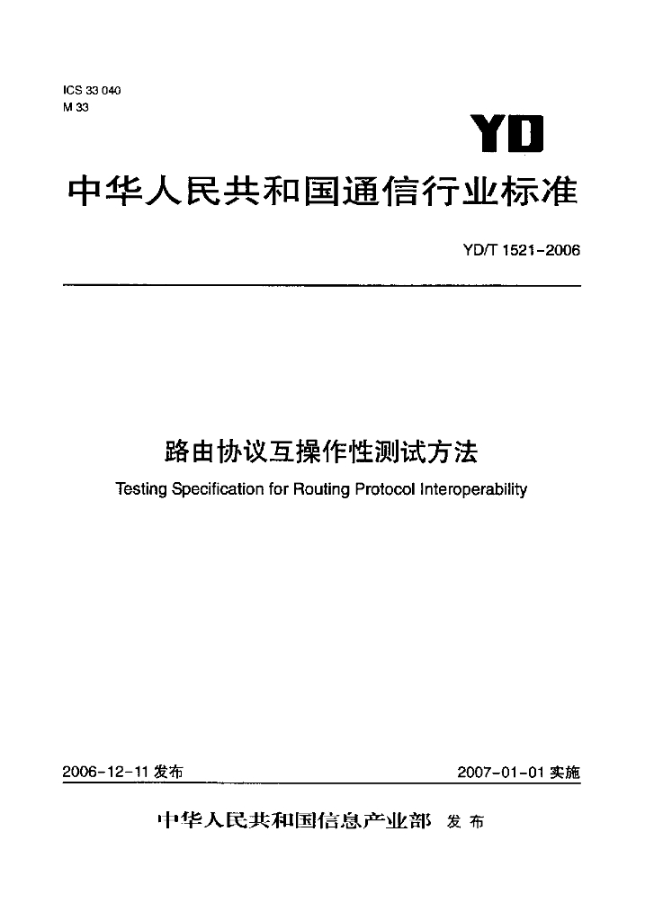 YD/T 1521-2006 路由协议互操作性测试方法