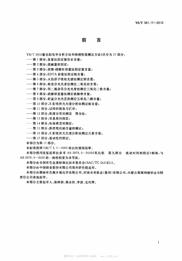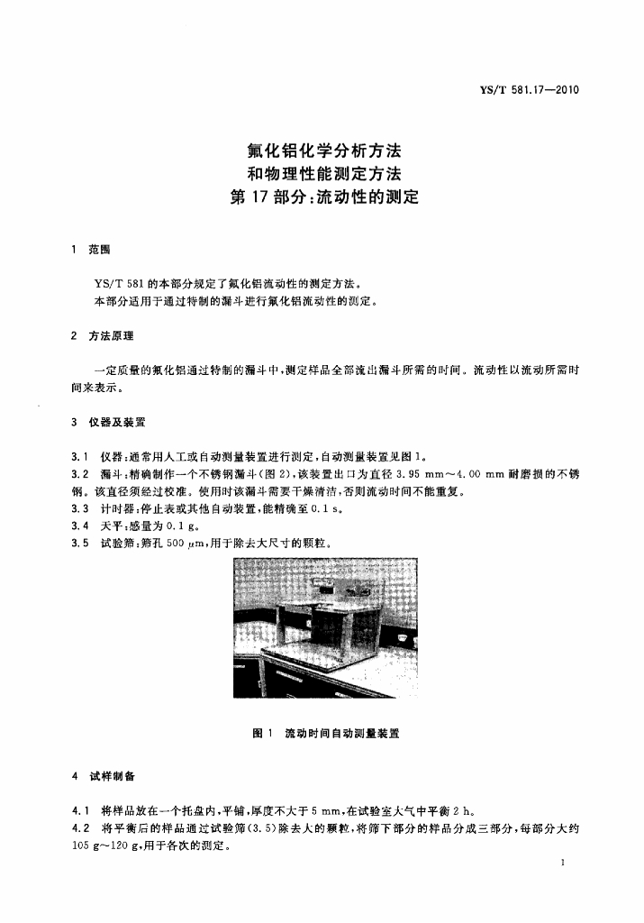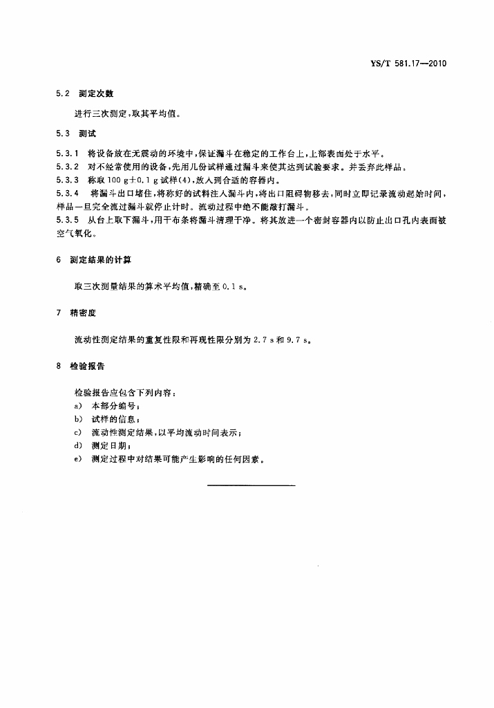 YS/T 581.17-2010 氟化铝化学分析方法和物理性能测定方法 第17部分:流动性的测定