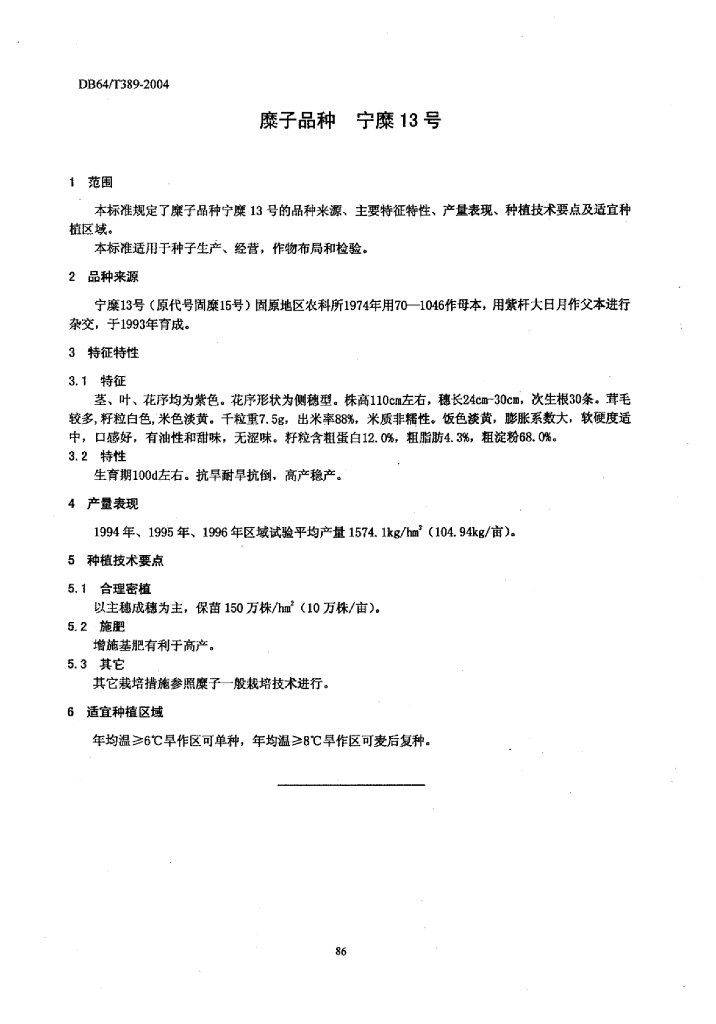 DB64/T 389-2004 糜子品种 宁糜13号
