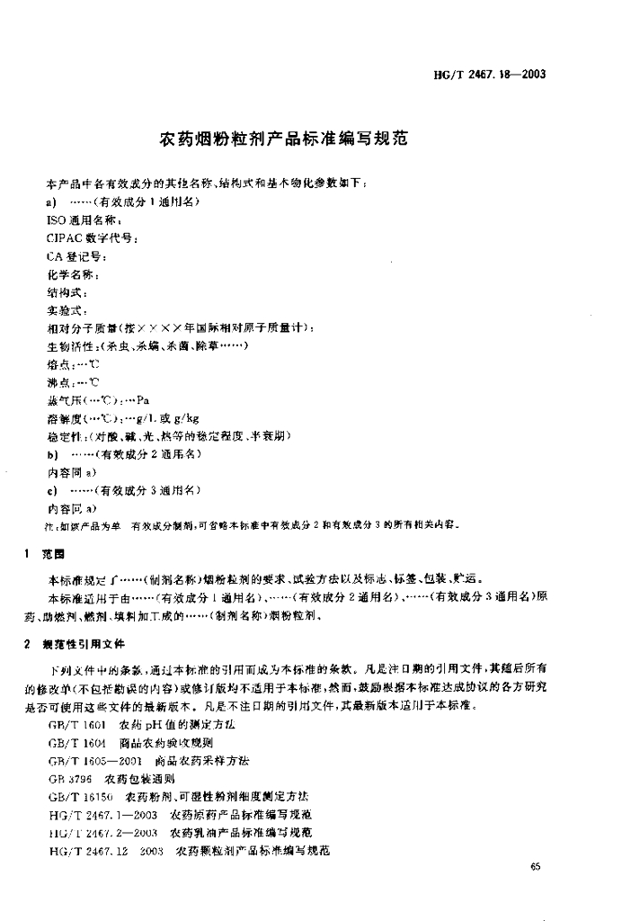 HG/T 2467.18-2003 农药烟粉粒剂产品标准编写规范