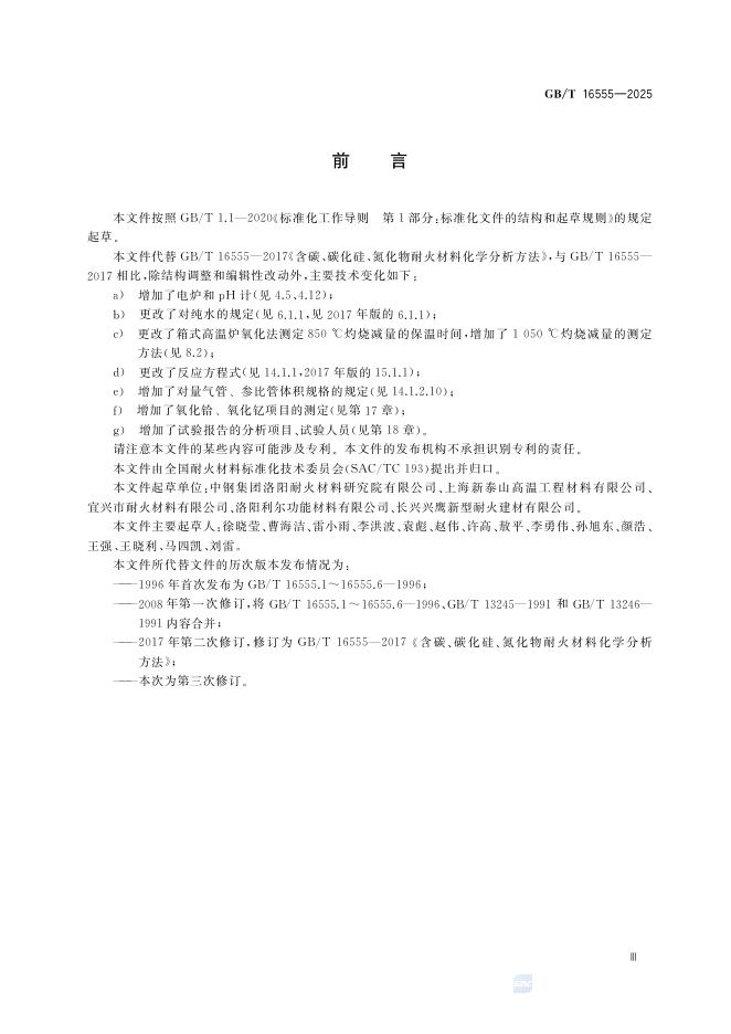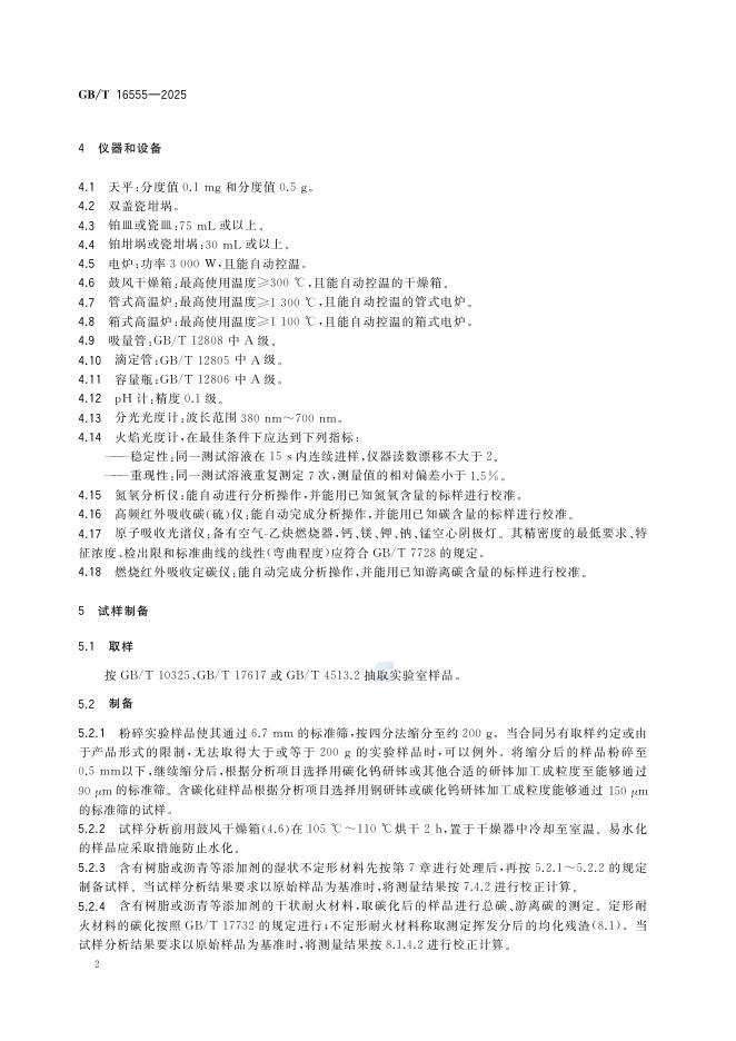 GB/T 16555-2025 含碳、碳化硅、氮化物耐火材料化学分析方法