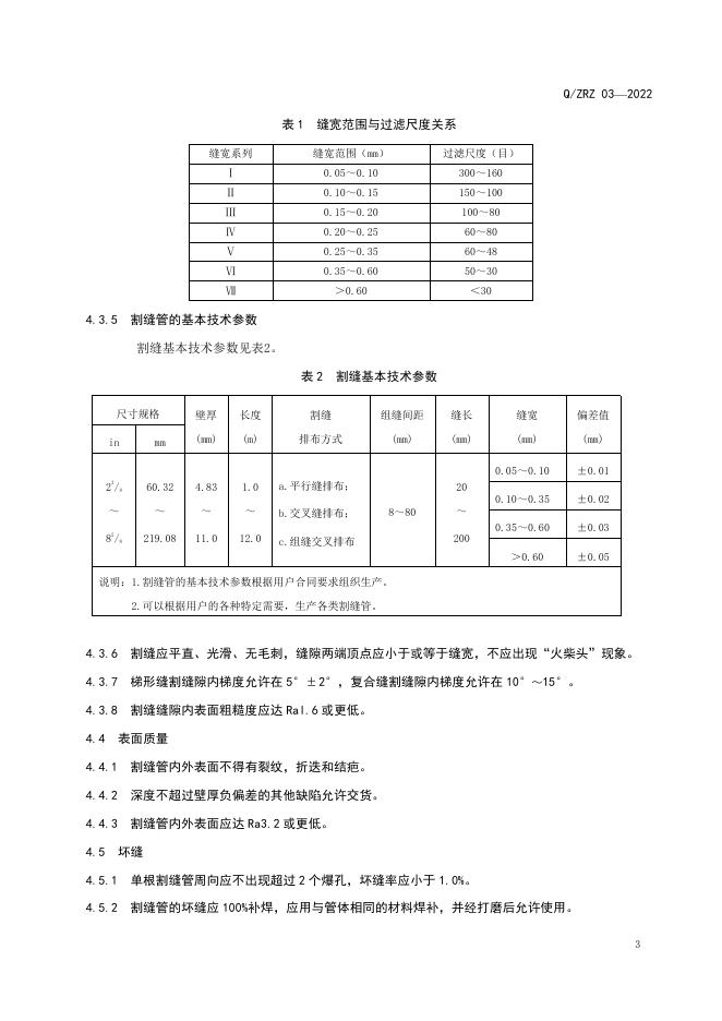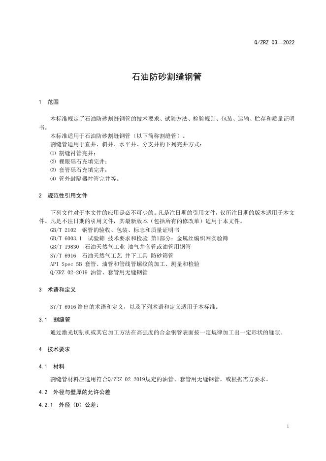 Q/ZRZ 03-2022 石油防砂割缝钢管