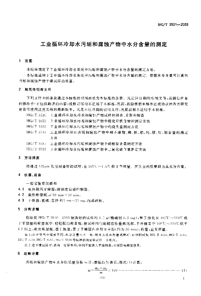 HG/T 3531-2003 工业循环冷却水污垢和腐蚀产物中水分含量的测定