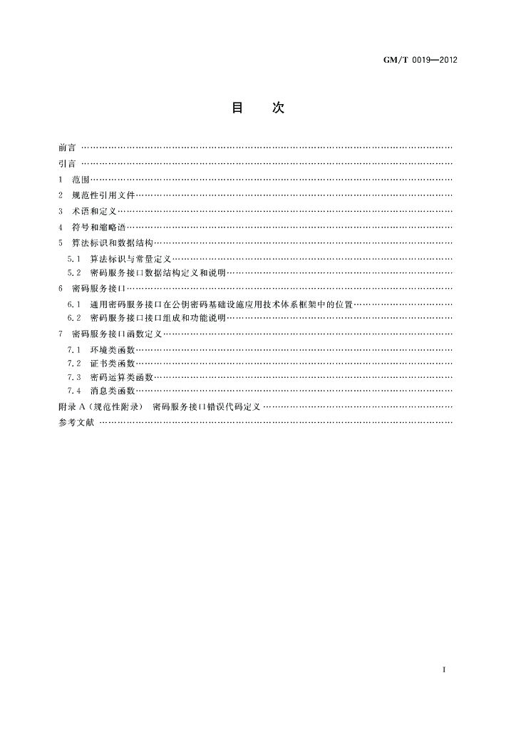 GM/T 0019-2012 通用密码服务接口规范