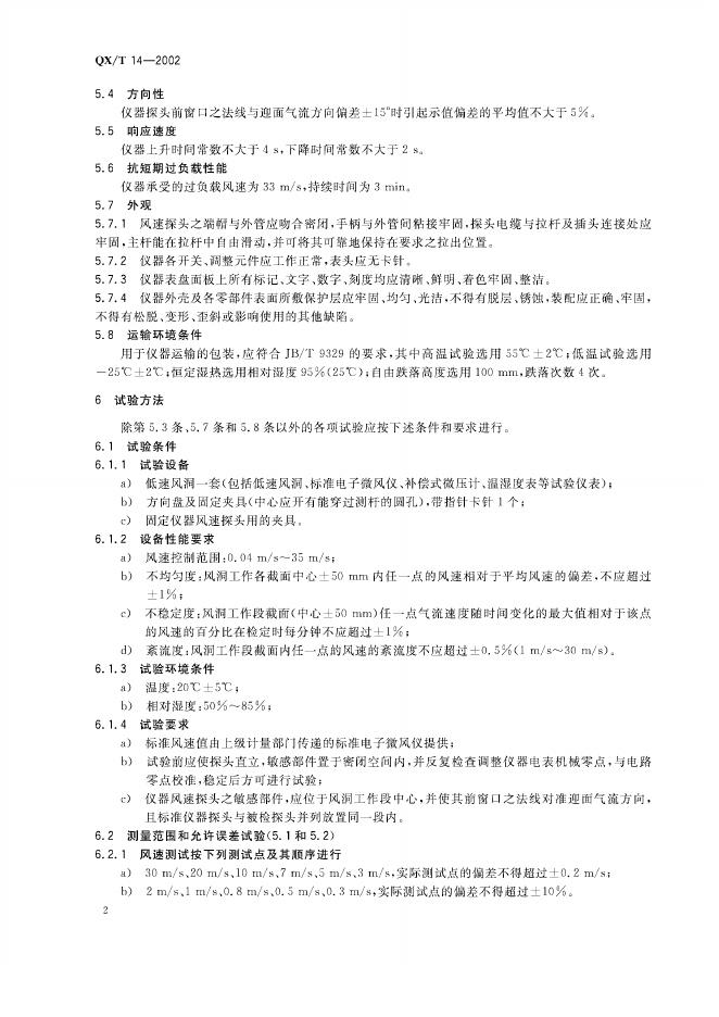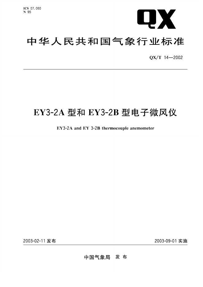 QX/T 14-2002 EY3-2A型和EY3-2B型电子微风仪