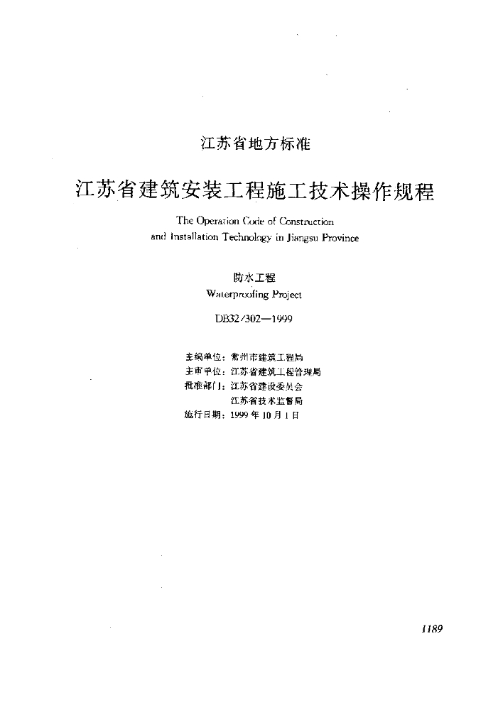 DB32/ 302-1999 江苏省建筑安装工程施工技术操作规程 防水工程