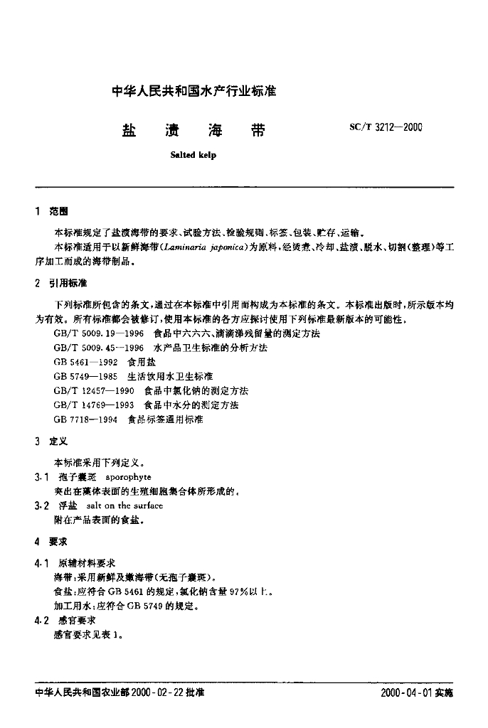 SC/T 3212-2000 盐渍海带