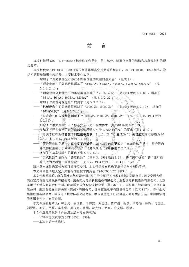 山东晨鸿电气有限公司、西门子中压开关技术(无锡)有限公司、西安交通大学、陕西宝光真空电器股份有限公司、昆山国力电子科技股份有限公司、湖北汉光科技股份有限公司、北京龙源开关设备有限责任公司、成都国光电气股份有限公司(原776厂)、电科北方智能电气(北京)有限公司、东芝白云真空开关管(锦州)有限公司、甘肃虹光电子有限责任公司(原778厂)、吉林永大集团股份有限公司、中国电子技术标准化研究院、中国真空电子行业协会无源开关管分会、中国振华电子集团宇光电工有限公司