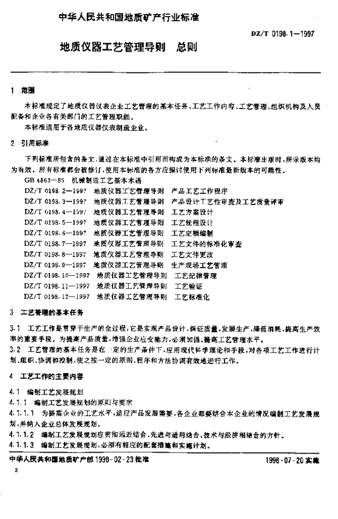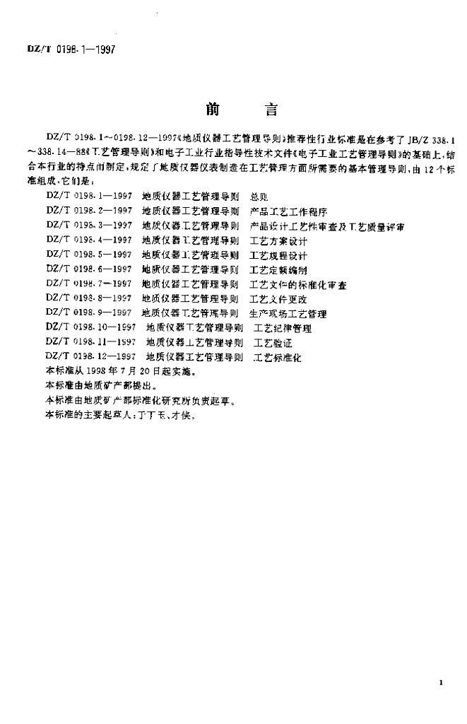 DZ/T 0198.1-1997 地质仪器工艺管理导则 总则