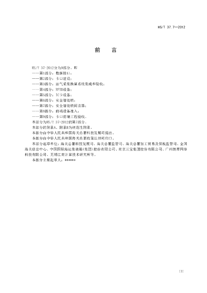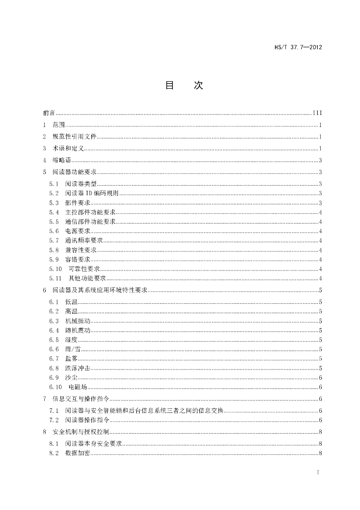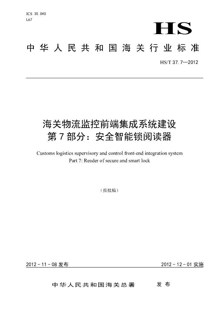HS/T 37.7-2012 海关物流监控前端集成系统建设 第7部分:安全智能锁阅读器(报批稿)