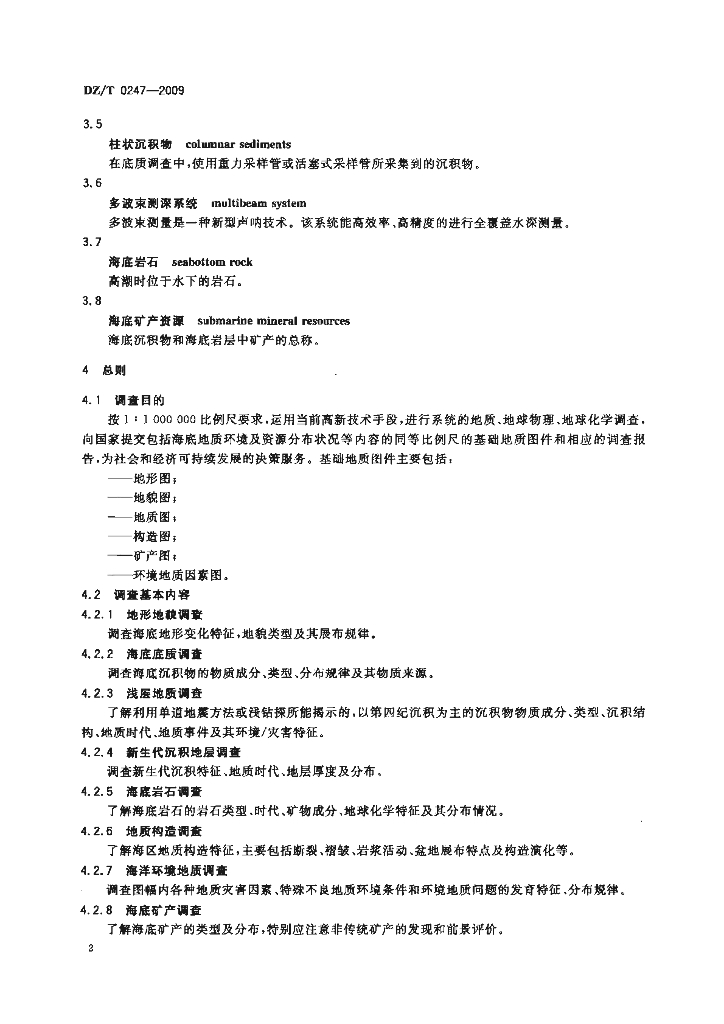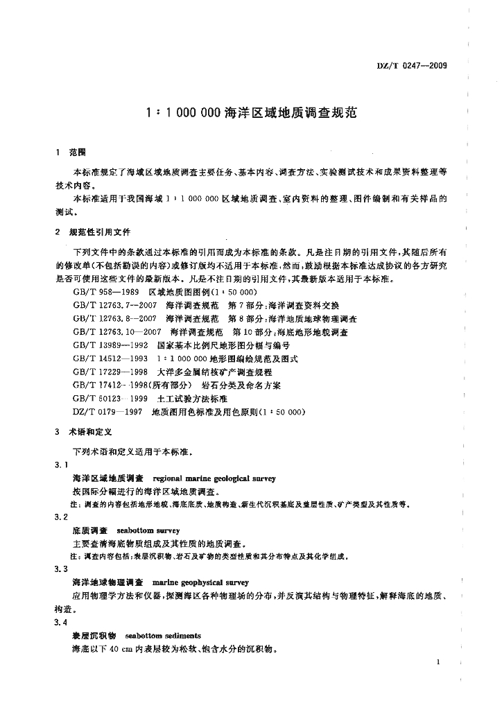 DZ/T 0247-2009 1:1000000 海洋区域地质调查规范