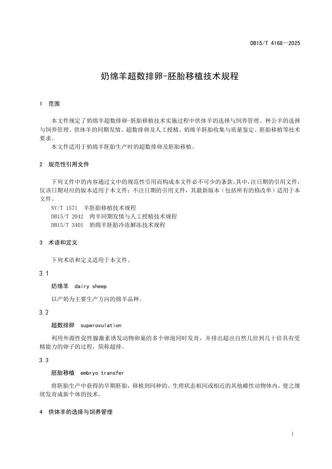 DB15/T 4168-2025 奶绵羊超数排卵-胚胎移植技术规程