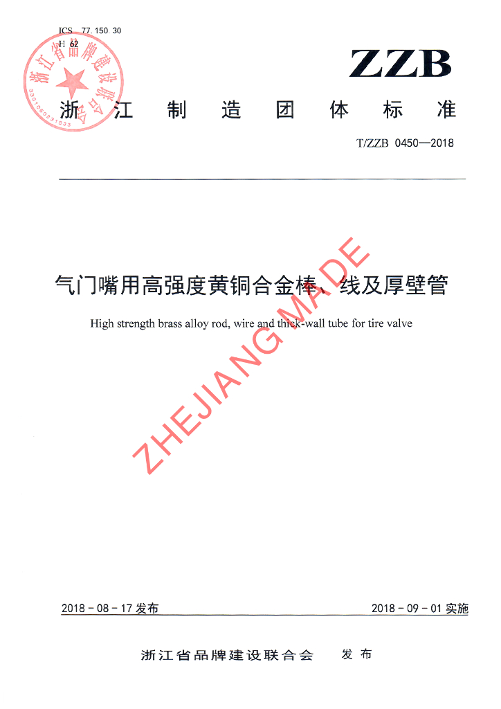 宁波金田铜业(集团)股份有限公司、宁波市标准化研究院、宁波长振铜业有限公司、宁波市产品质量监督检验研究院、江阴创新气门嘴有限公司、宁波博威合金材料股份有限公司