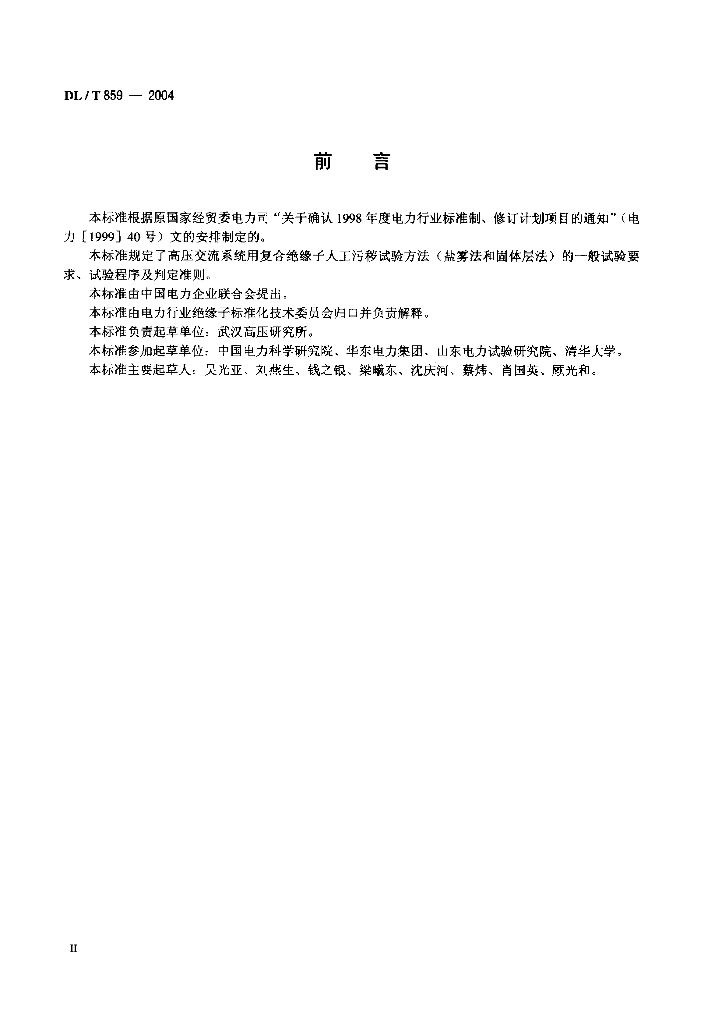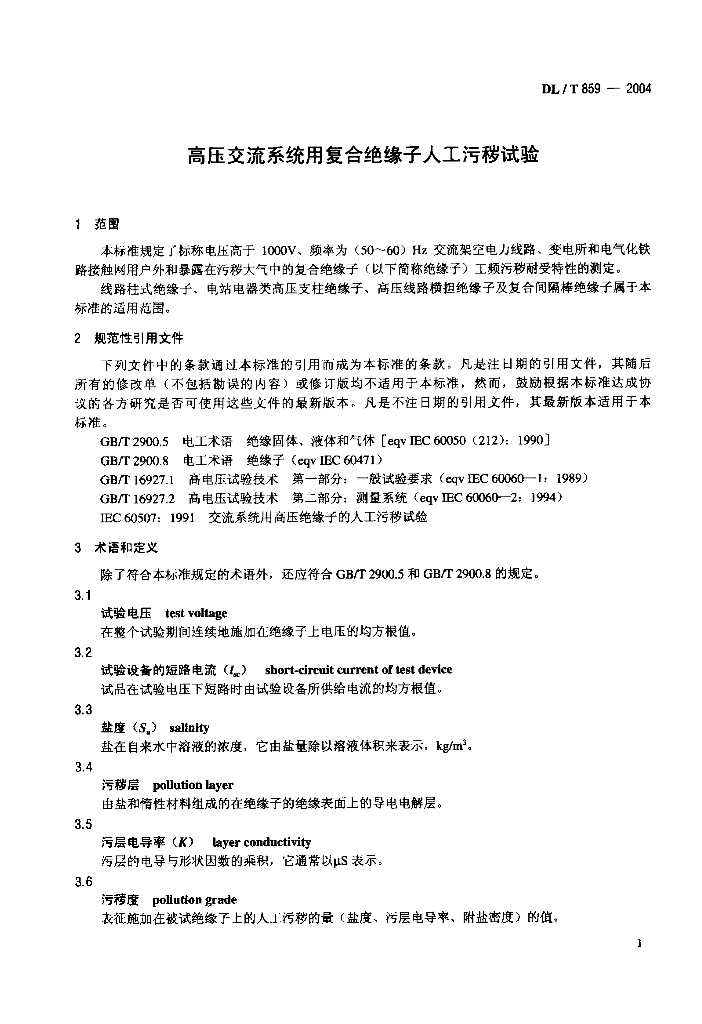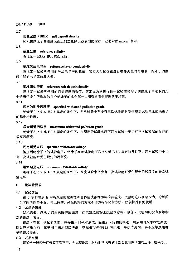 DL/T 859-2004 高压交流系统用复合绝缘子人工污秽试验