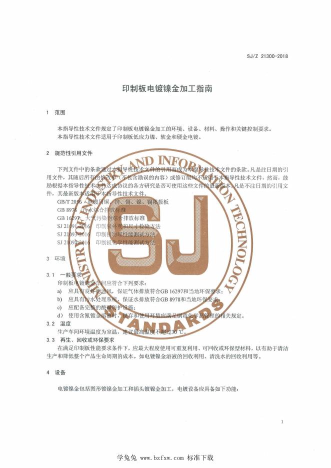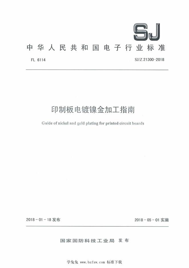 SJ/Z 21300-2018 印制板电镀镍金加工指南