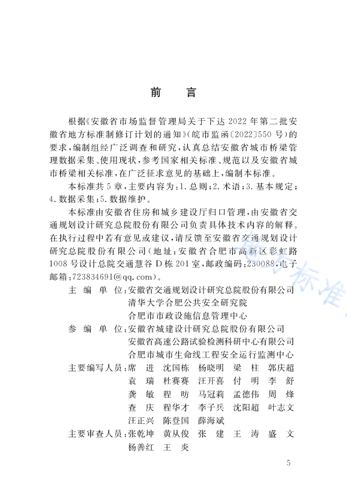 安徽省交通规划设计研究总院股份有限公司、清华大学合肥公共安全研究院、合肥市市政设施信息管理中心、安徽省城建设计研究总院股份有限公司、安徽省高速公路试验检测科研中心有限公司、合肥市城市生命线工程安全运行监测中心