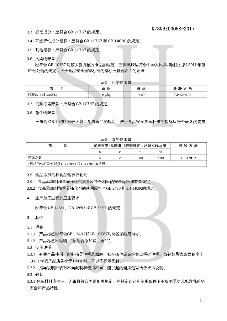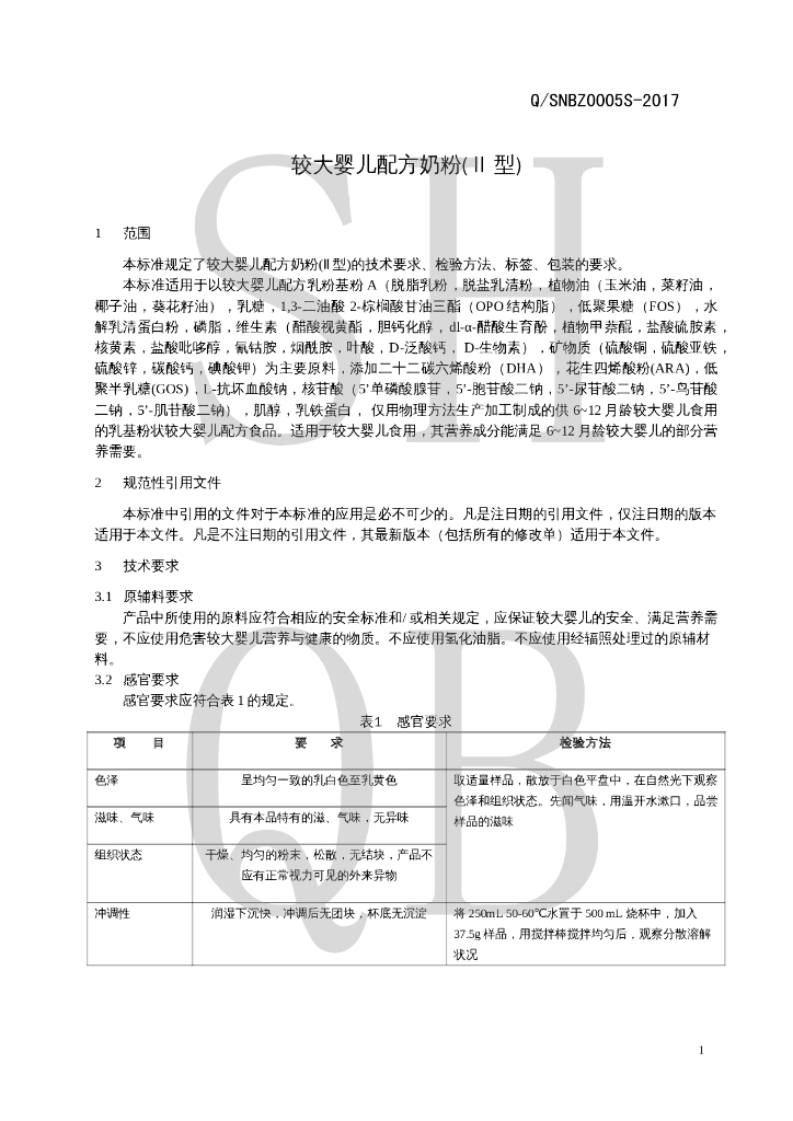 Q/SNBZ 0005S-2017 较大婴儿配方奶粉(Ⅱ型)