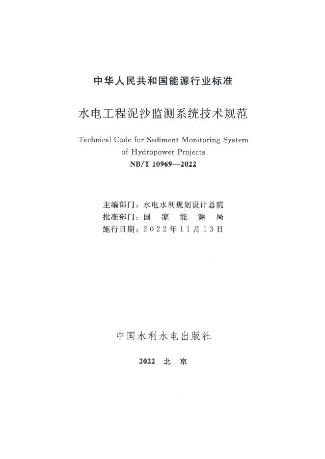 NB/T 10969-2022 水电工程泥沙监测系统技术规范(附条文说明)