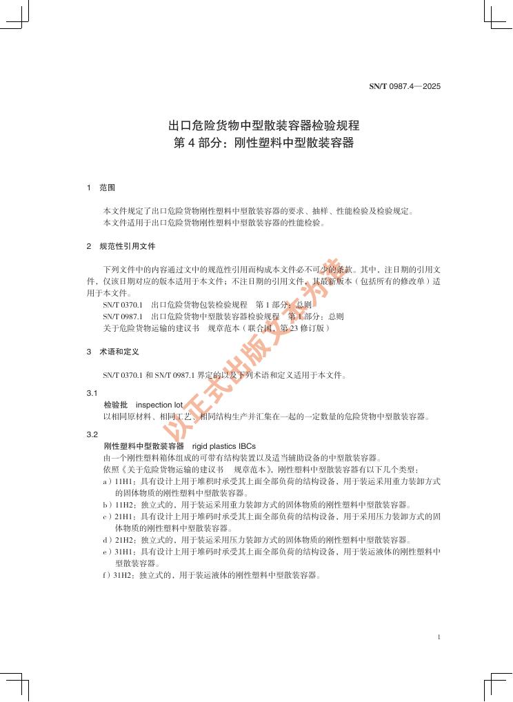 SN/T 0987.4-2025 出口危险货物中型散装容器检验规程 第4部分:刚性塑料中型散装容器