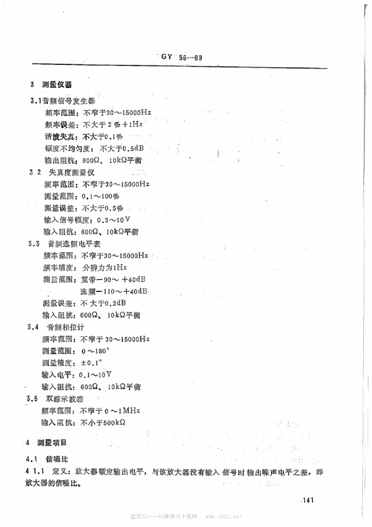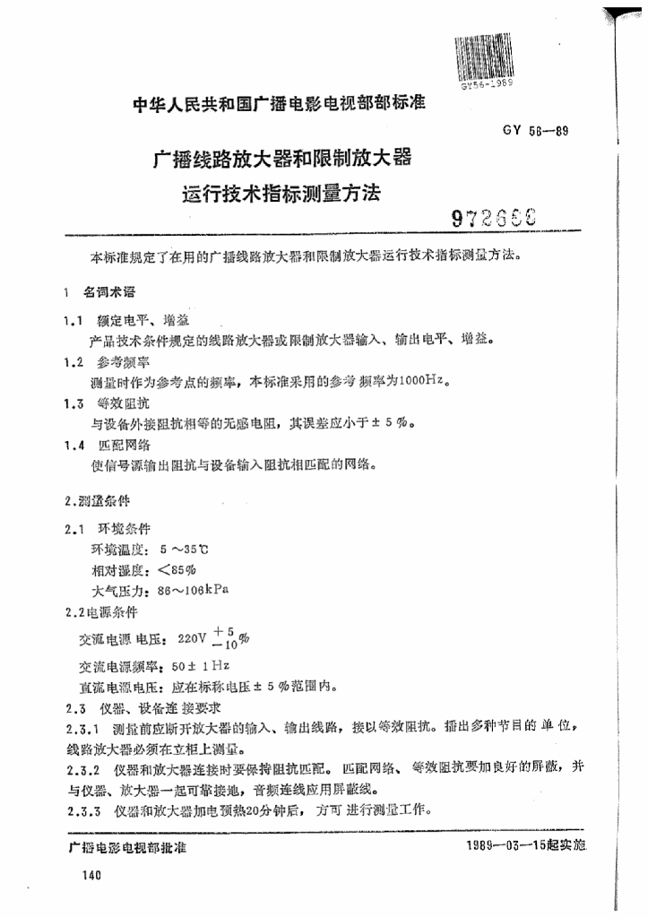 GY 56-1989 广播线路放大器和限制放大器运行技术指标测量方法